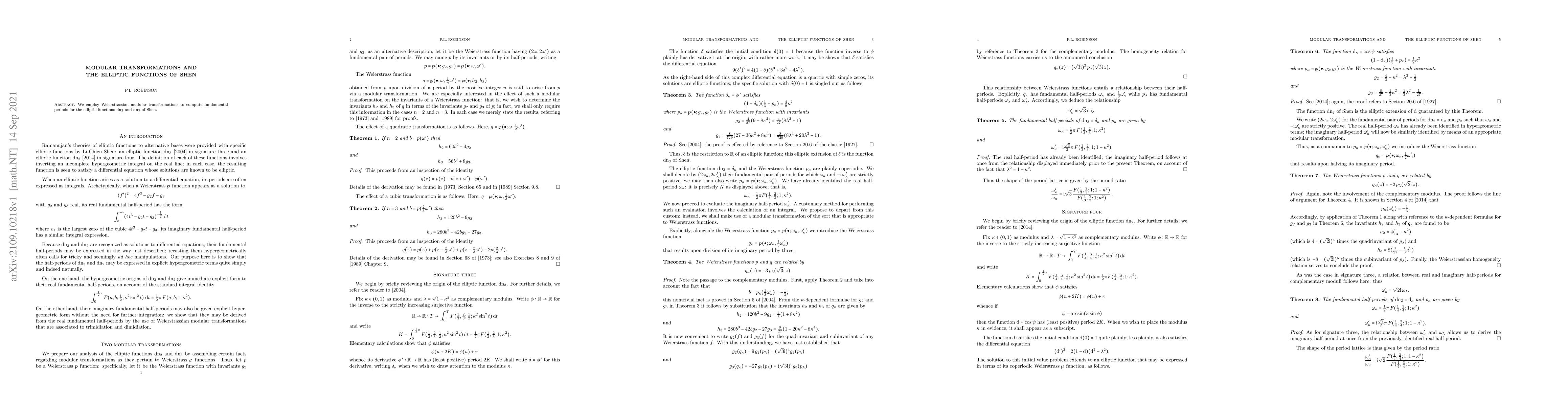 This paper uses Weierstrassian modular transformations to determine the fundamental periods of Shen's elliptic functions ${\rm dn}_2$ and ${\rm dn}_3$. The approach provides a new method for analyzing these specific elliptic functions.
