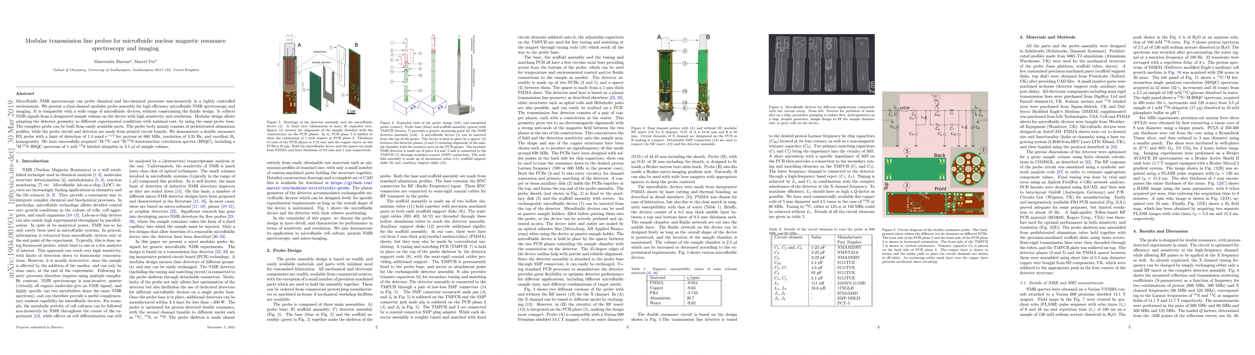 This paper presents a modular, dual-channel probe assembly for high-efficiency microfluidic NMR spectroscopy and imaging, compatible with various microfluidic devices. The probe demonstrates high sensitivity and resolution, with a detection limit of 1.4 nmol s$^{1/2}$ for protons at 600 MHz and successful acquisition of $^1$H-$^{13}$C and $^1$H-$^{15}$N HSQC spectra.