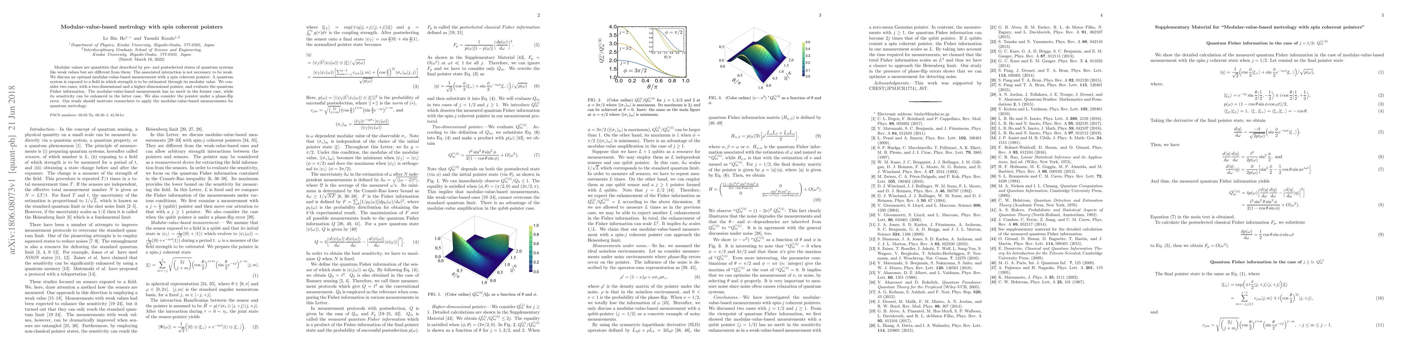 Modular values are quantities that described by pre- and postselected states of quantum systems like weak values but are different from them: The associated interaction is not necessary to be weak. We discuss an optimal modular-value-based measurement with a spin coherent pointer: A quantum system is exposed to a field in which strength is to be estimated through its modular value. We consider two cases, with a two-dimensional and a higher-dimensional pointer, and evaluate the quantum Fisher information. The modular-value-based measurement has no merit in the former case, while its sensitivity can be enhanced in the latter case. We also consider the pointer under a phase-flip error. Our study should motivate researchers to apply the modular-value-based measurements for quantum metrology.