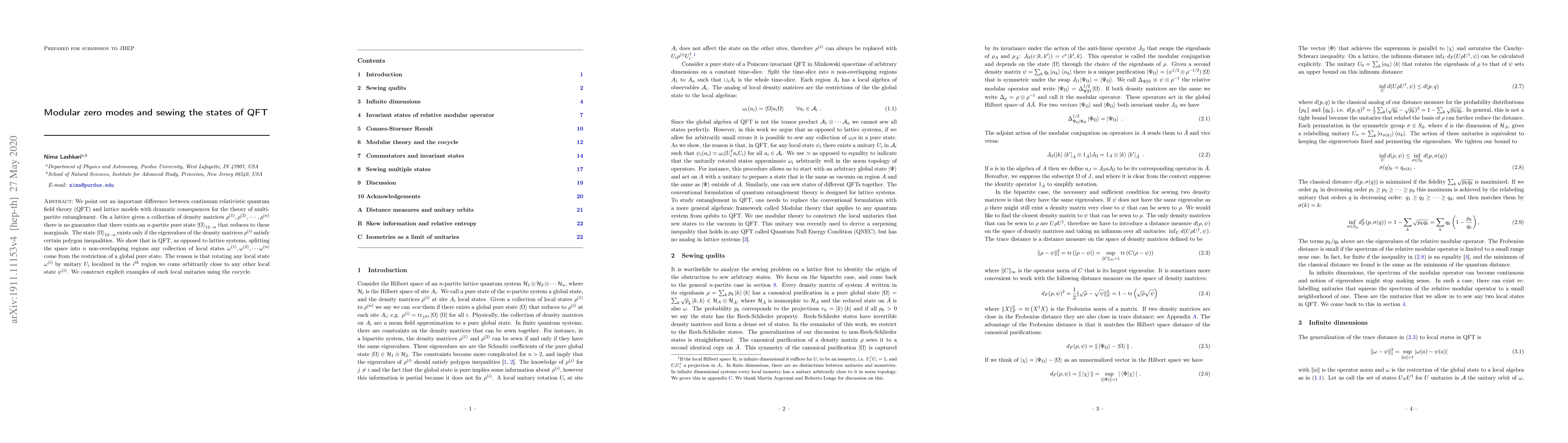 Researchers explore how quantum field theory (QFT) differs from lattice models in terms of local states and multi-partite entanglement, finding that QFT allows for a global pure state to be split into any collection of local states.