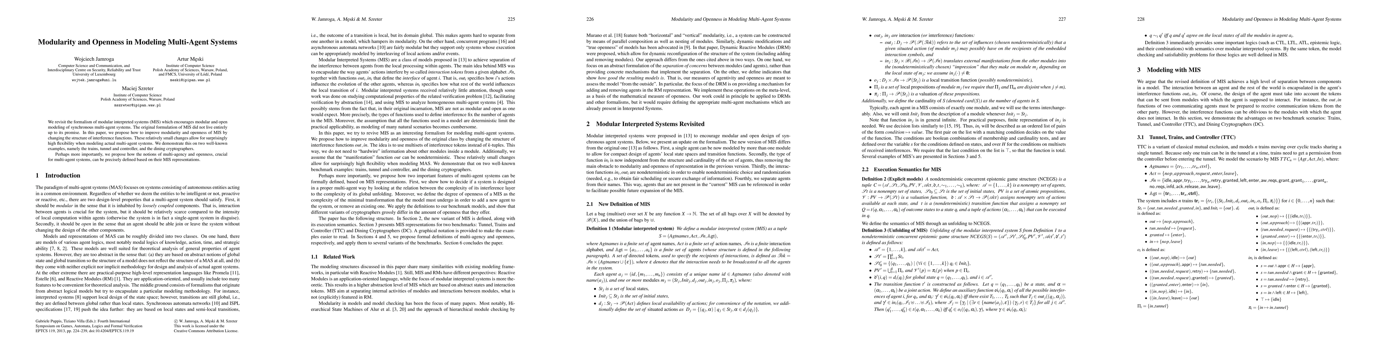 This paper enhances the modular interpreted systems (MIS) formalism for modeling synchronous multi-agent systems, improving modularity and openness via adjusted interference functions. It successfully demonstrates flexibility on examples like trains, tunnel, controller, and dining cryptographers. The research precisely defines multi-agency and openness in MIS representations, crucial for multi-agent systems.