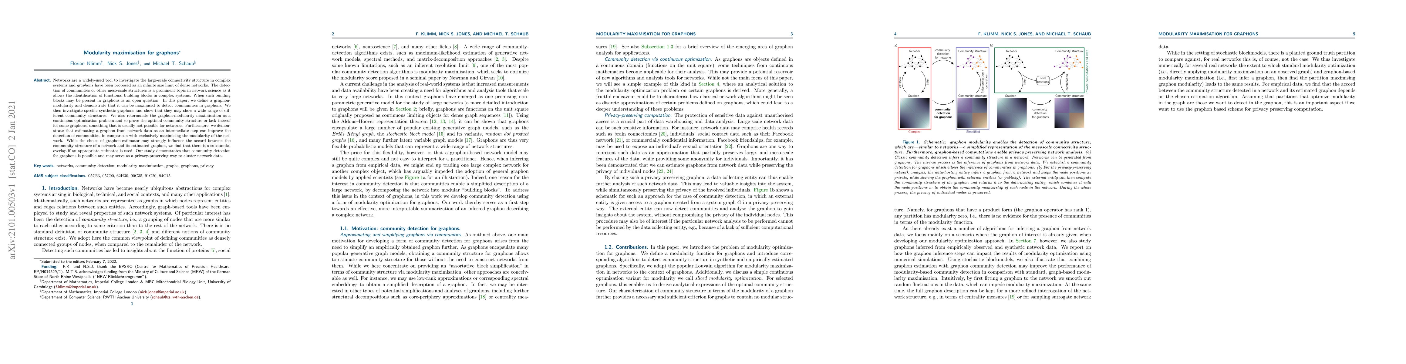 Networks are a widely-used tool to investigate the large-scale connectivity structure in complex systems and graphons have been proposed as an infinite size limit of dense networks. The detection of communities or other meso-scale structures is a prominent topic in network science as it allows the identification of functional building blocks in complex systems. When such building blocks may be present in graphons is an open question. In this paper, we define a graphon-modularity and demonstrate that it can be maximised to detect communities in graphons. We then investigate specific synthetic graphons and show that they may show a wide range of different community structures. We also reformulate the graphon-modularity maximisation as a continuous optimisation problem and so prove the optimal community structure or lack thereof for some graphons, something that is usually not possible for networks. Furthermore, we demonstrate that estimating a graphon from network data as an intermediate step can improve the detection of communities, in comparison with exclusively maximising the modularity of the network. While the choice of graphon-estimator may strongly influence the accord between the community structure of a network and its estimated graphon, we find that there is a substantial overlap if an appropriate estimator is used. Our study demonstrates that community detection for graphons is possible and may serve as a privacy-preserving way to cluster network data.