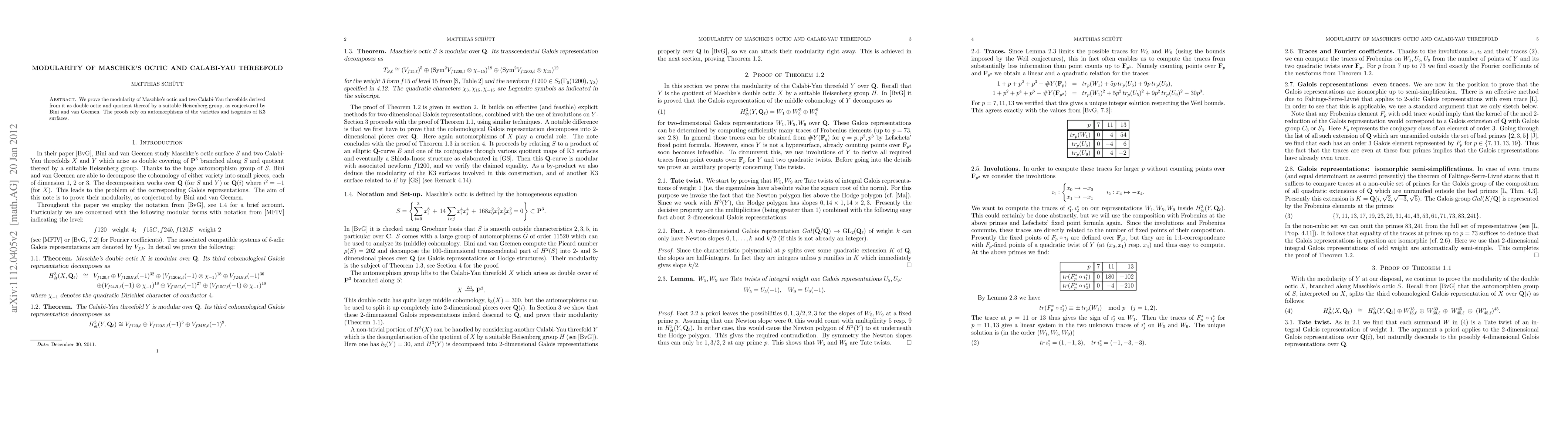 This paper proves the modularity of Maschke's octic and two related Calabi-Yau threefolds, confirming conjectures by Bini and van Geemen. The proofs utilize the automorphisms of these varieties and isogenies of K3 surfaces.