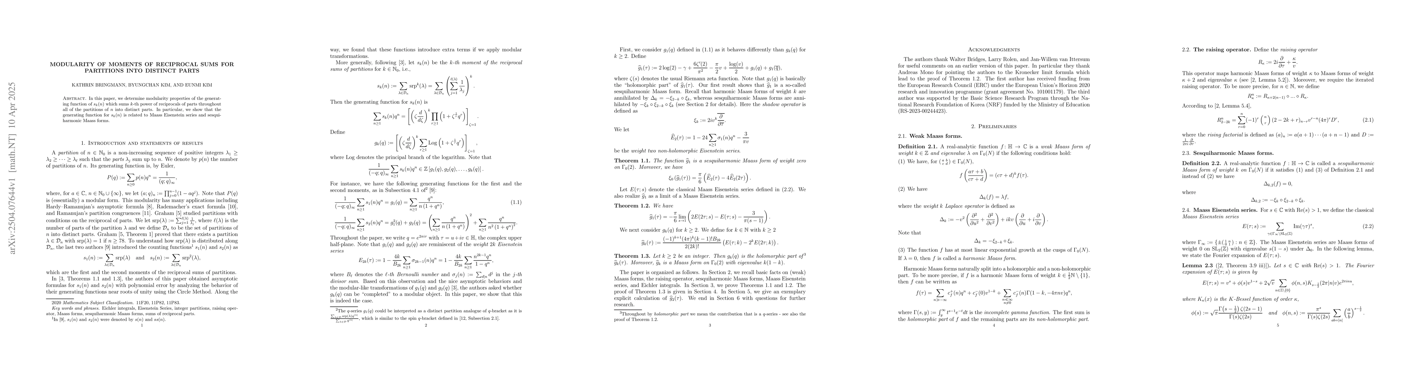 This work is novel in bridging the gap between partition theory, specifically partitions into distinct parts, and the theory of modular and automorphic forms, thereby offering fresh perspectives in both fields.