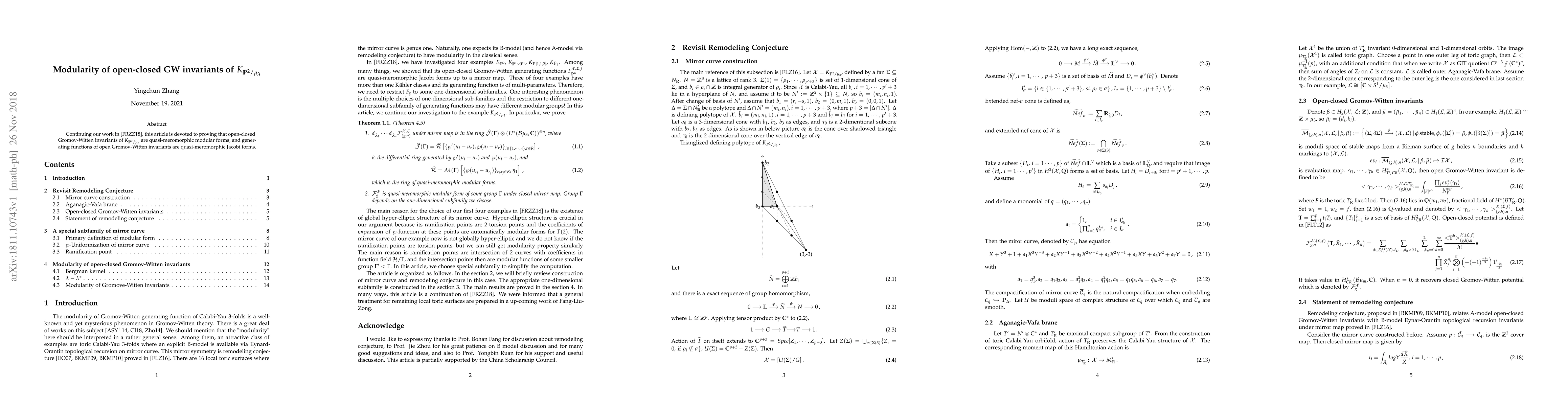 This paper proves that open-closed Gromov-Witten invariants of $K_{\mathbb{P}^2/\mu_3}$ are quasi-meromorphic modular forms, and establishes that generating functions of open Gromov-Witten invariants are quasi-meromorphic Jacobi forms.