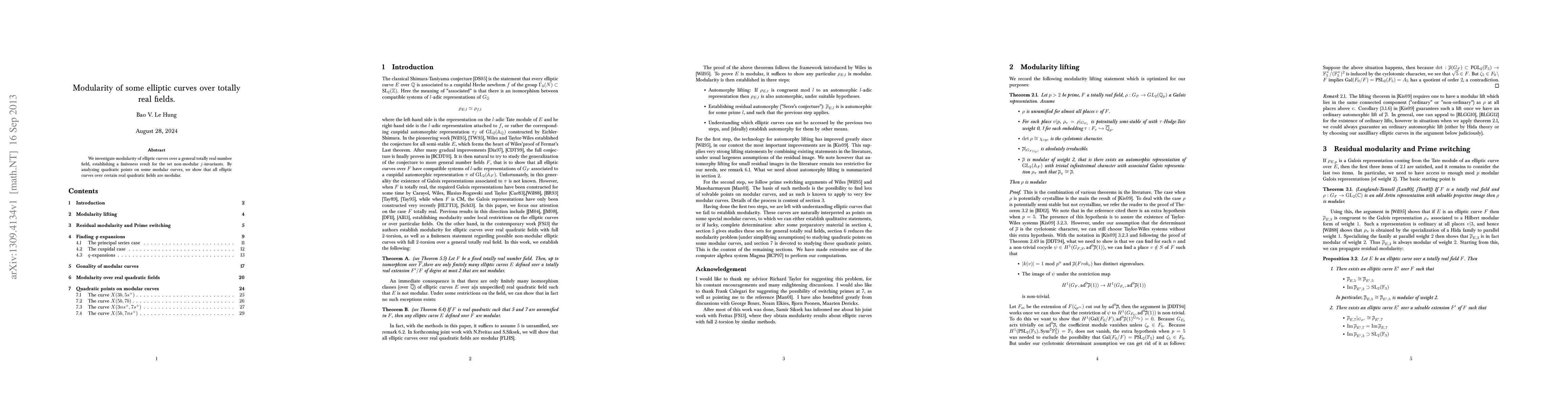The paper establishes a finiteness result for non-modular $j$-invariants of elliptic curves over totally real number fields, proving that all elliptic curves over specific real quadratic fields are modular by analyzing quadratic points on modular curves.