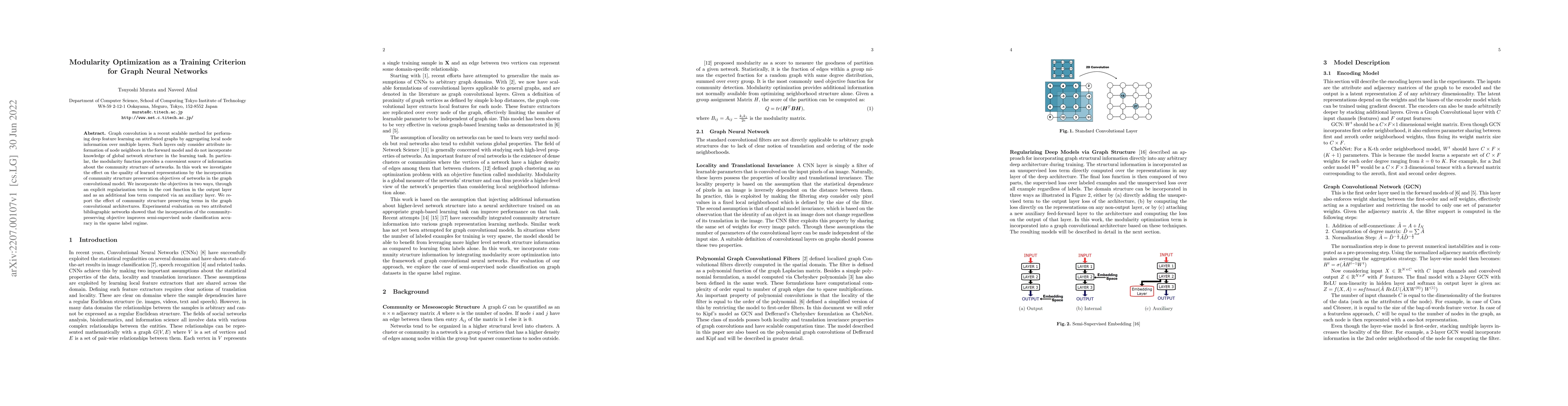 This paper explores incorporating community structure preservation objectives into graph convolutional networks to enhance learned representations. The study finds that adding modularity optimization as a training criterion improves semi-supervised node classification accuracy, particularly in scenarios with sparse labels.