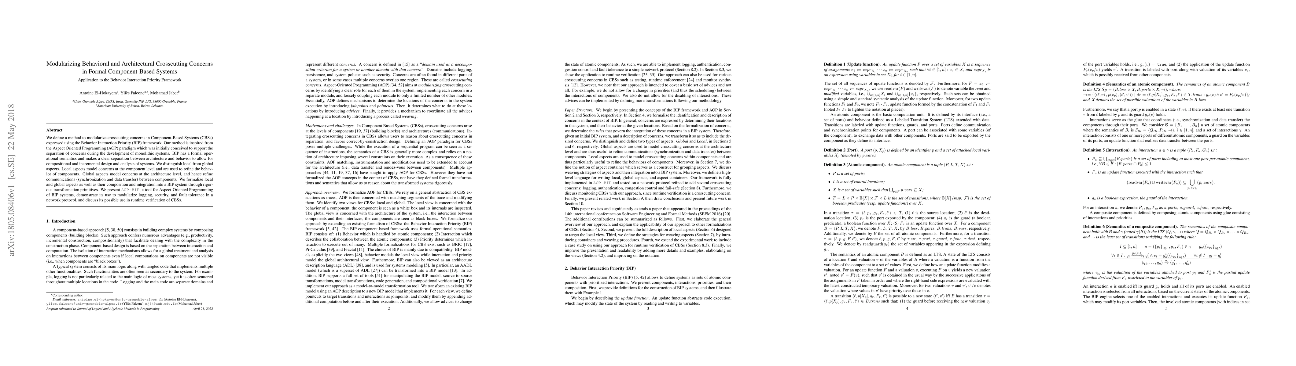 This paper proposes a method to modularize crosscutting concerns in Component-Based Systems using the Behavior Interaction Priority framework, inspired by Aspect Oriented Programming. It distinguishes local and global aspects to refine component behavior and inter-component communication, respectively, and introduces AOP-BIP for practical application.