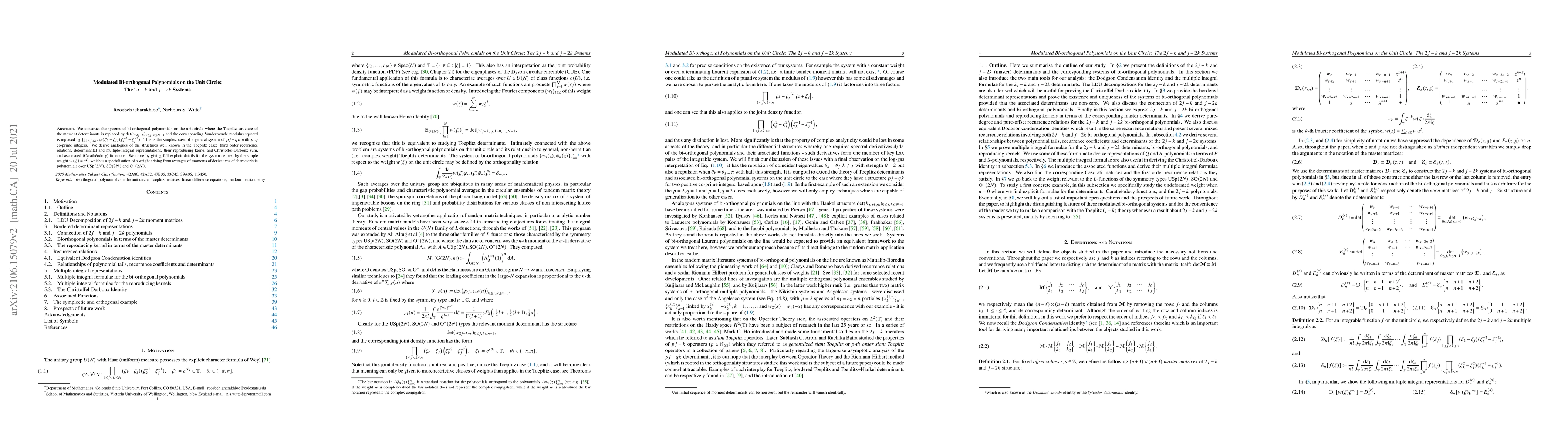 We construct the systems of bi-orthogonal polynomials on the unit circle where the Toeplitz structure of the moment determinants is replaced by $ \det(w_{2j-k})_{0\leq j,k \leq N-1} $ and the corresponding Vandermonde modulus squared is replaced by $ \prod_{1 \le j < k \le N}(\zeta^{2}_k - \zeta^{2}_j)(\zeta^{-1}_k - \zeta^{-1}_j) $. This is the simplest case of a general system of $pj-qk$ with $p,q$ co-prime integers. We derive analogues of the structures well known in the Toeplitz case: third order recurrence relations, determinantal and multiple-integral representations, their reproducing kernel and Christoffel-Darboux sum, and associated (Carath{\'e}odory) functions. We close by giving full explicit details for the system defined by the simple weight $ w(\zeta)=e^{\zeta}$, which is a specialisation of a weight arising from averages of moments of derivatives of characteristic polynomials over $USp(2N)$, $SO(2N)$ and $O^-(2N)$.