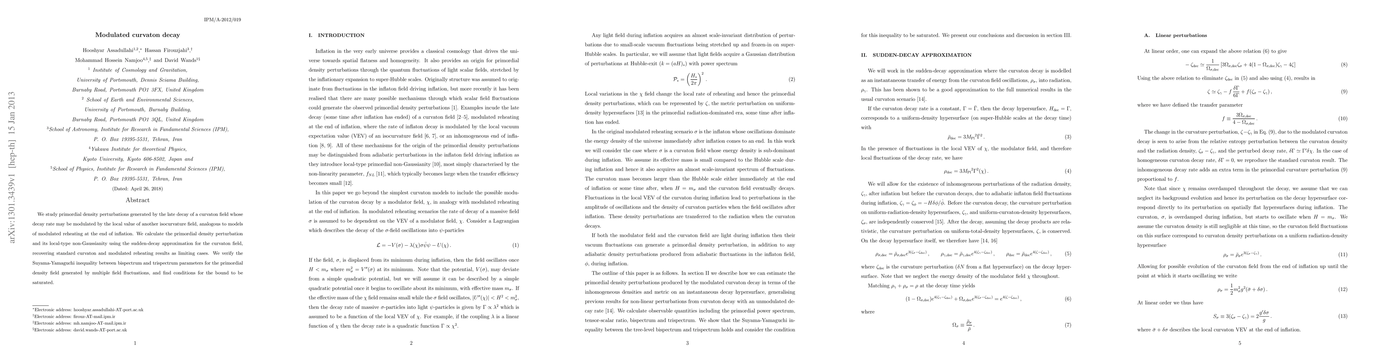 This paper investigates density perturbations from the modulated decay of a curvaton field influenced by another isocurvature field, calculating the resulting primordial density and local-type non-Gaussianity. It verifies the Suyama-Yamaguchi inequality for the generated density field and identifies conditions for its saturation.