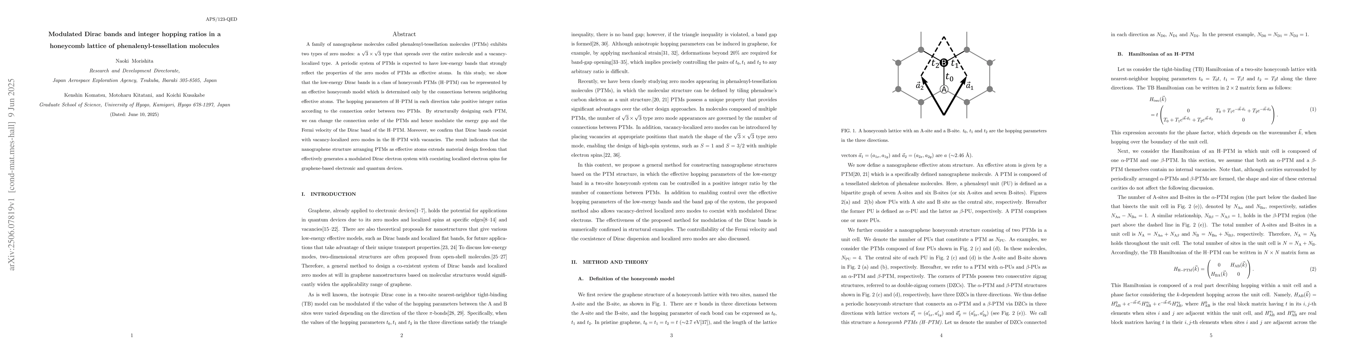 Researchers created a honeycomb lattice of nanographene molecules that exhibit modulated Dirac bands with varying energy gaps and Fermi velocities, opening up new design possibilities for graphene-based electronic devices.