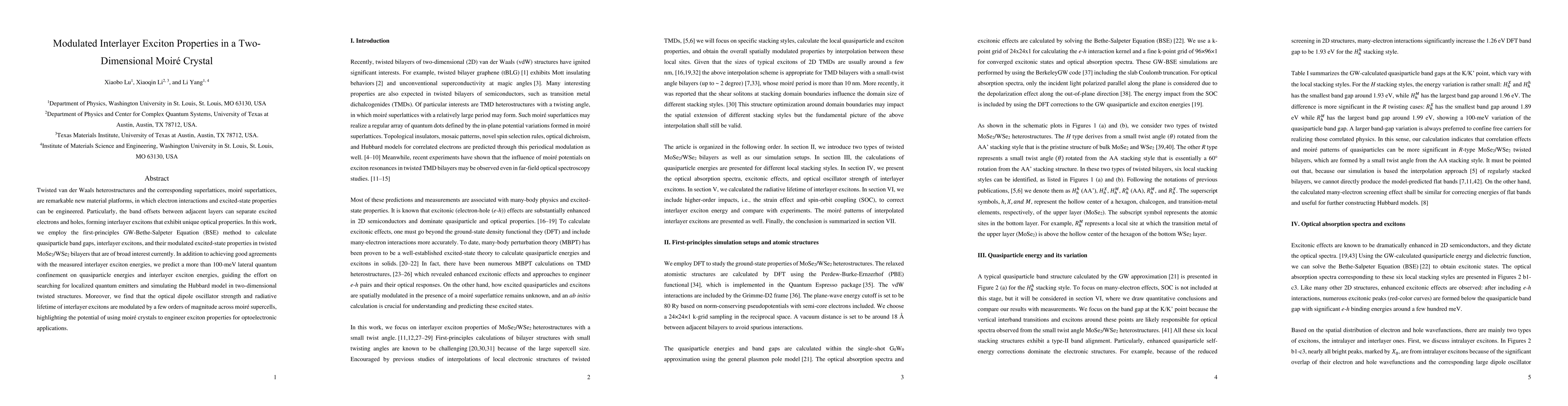 This research investigates the modulated properties of interlayer excitons in twisted MoSe2/WSe2 bilayers using the GW-Bethe-Salpeter Equation method, revealing a significant lateral quantum confinement effect and substantial modulation in optical dipole strength and radiative lifetime, which could enhance optoelectronic applications.
