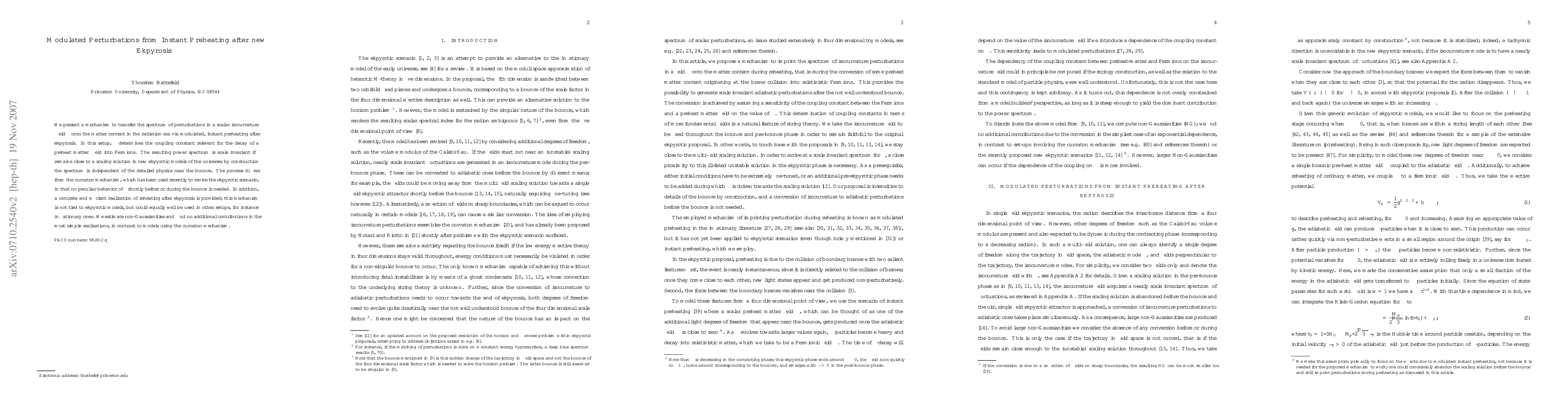 We present a mechanism to transfer the spectrum of perturbations in a scalar isocurvature field $\xi$ onto the matter content in the radiation era via modulated, instant preheating after ekpyrosis. In this setup, $\xi$ determines the coupling constant relevant for the decay of a preheat matter field into Fermions. The resulting power spectrum is scale invariant if $\xi$ remains close to a scaling solution in new ekpyrotic models of the universe; by construction the spectrum is independent of the detailed physics near the bounce. The process differs from the curvaton mechanism, which has been used recently to revive the ekpyrotic scenario, in that no peculiar behavior of $\xi$ shortly before or during the bounce is needed. In addition, a concrete and efficient realization of reheating after ekpyrosis is provided; this mechanism is not tied to ekpyrotic models, but could equally well be used in other setups, for instance inflationary ones. We estimate non-Gaussianities and find no additional contributions in the most simple realizations, in contrast to models using the curvaton mechanism.