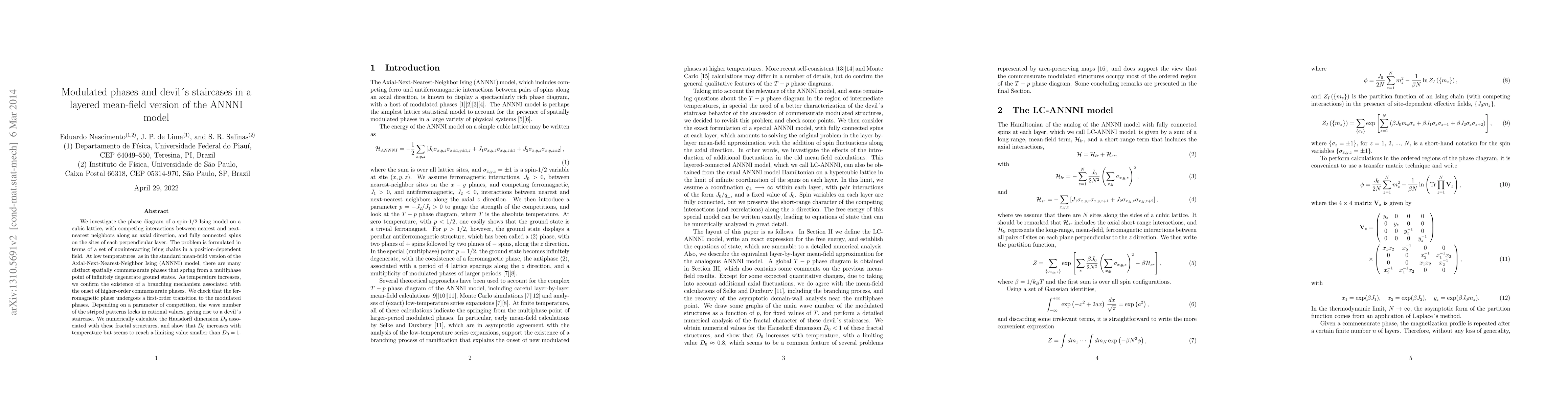 We investigate the phase diagram of a spin-$1/2$ Ising model on a cubic lattice, with competing interactions between nearest and next-nearest neighbors along an axial direction, and fully connected spins on the sites of each perpendicular layer. The problem is formulated in terms of a set of noninteracting Ising chains in a position-dependent field. At low temperatures, as in the standard mean-feild version of the Axial-Next-Nearest-Neighbor Ising (ANNNI) model, there are many distinct spatially commensurate phases that spring from a multiphase point of infinitely degenerate ground states. As temperature increases, we confirm the existence of a branching mechanism associated with the onset of higher-order commensurate phases. We check that the ferromagnetic phase undergoes a first-order transition to the modulated phases. Depending on a parameter of competition, the wave number of the striped patterns locks in rational values, giving rise to a devil's staircase. We numerically calculate the Hausdorff dimension $D_{0}$ associated with these fractal structures, and show that $D_{0}$ increases with temperature but seems to reach a limiting value smaller than $D_{0}=1$.
