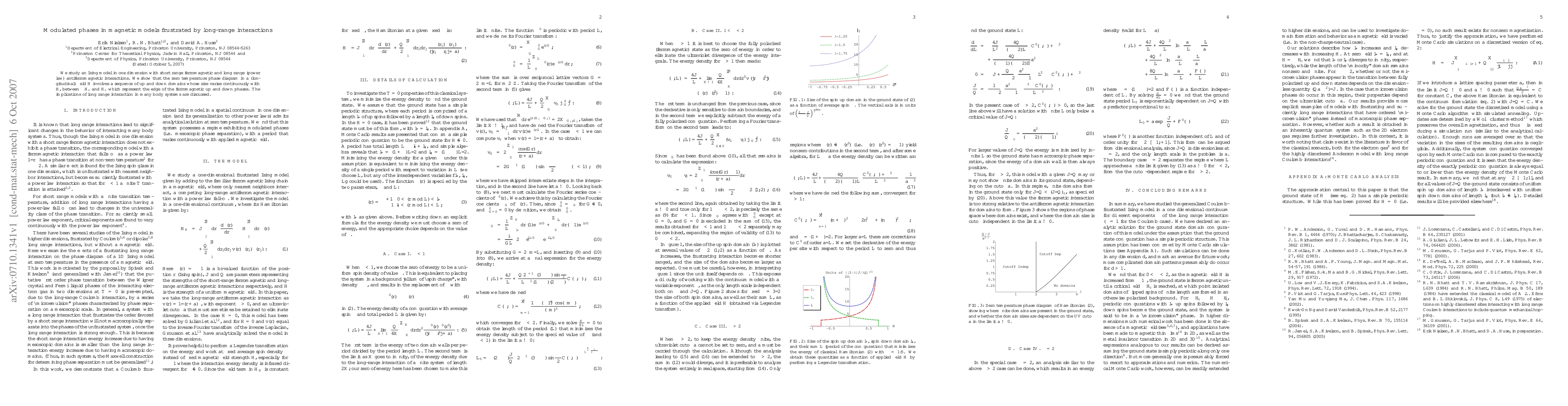 We study an Ising model in one dimension with short range ferromagnetic and long range (power law) antiferromagnetic interactions. We show that the zero temperature phase diagram in a (longitudinal) field H involves a sequence of up and down domains whose size varies continuously with H, between -H_c and H_c which represent the edge of the ferromagnetic up and down phases. The implications of long range interaction in many body systems are discussed.