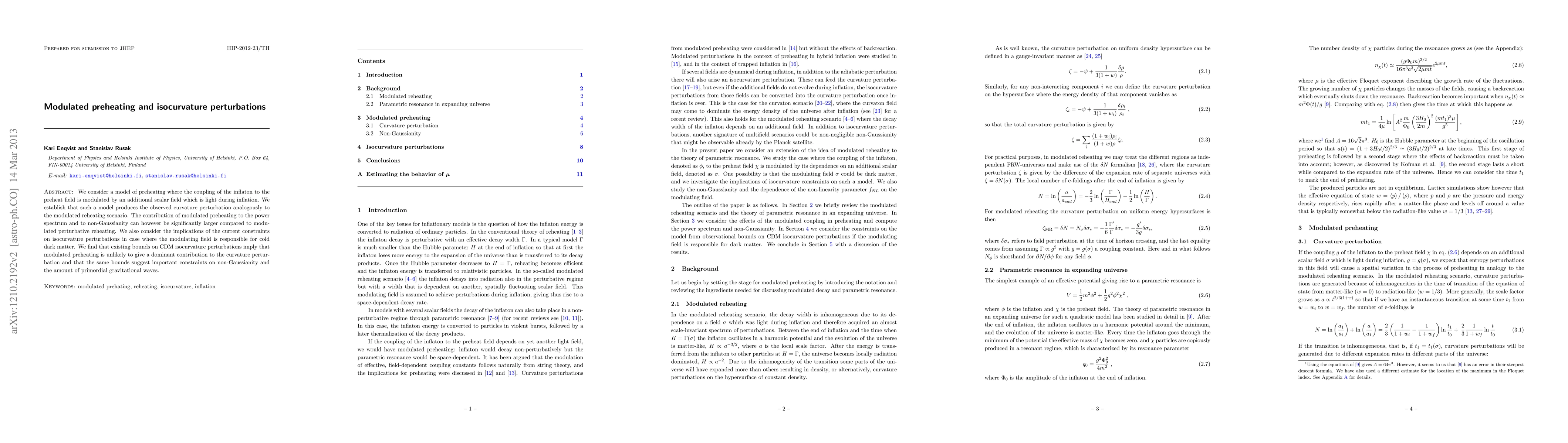 This paper explores a modulated preheating model where a light scalar field modulates the coupling between the inflaton and preheat fields, generating curvature perturbations similar to modulated reheating but with potentially higher power spectrum and non-Gaussianity. It also discusses the implications of isocurvature perturbations for cold dark matter, concluding that current constraints limit the model's contribution to curvature perturbations and impose significant constraints on non-Gaussianity and primordial gravitational waves.