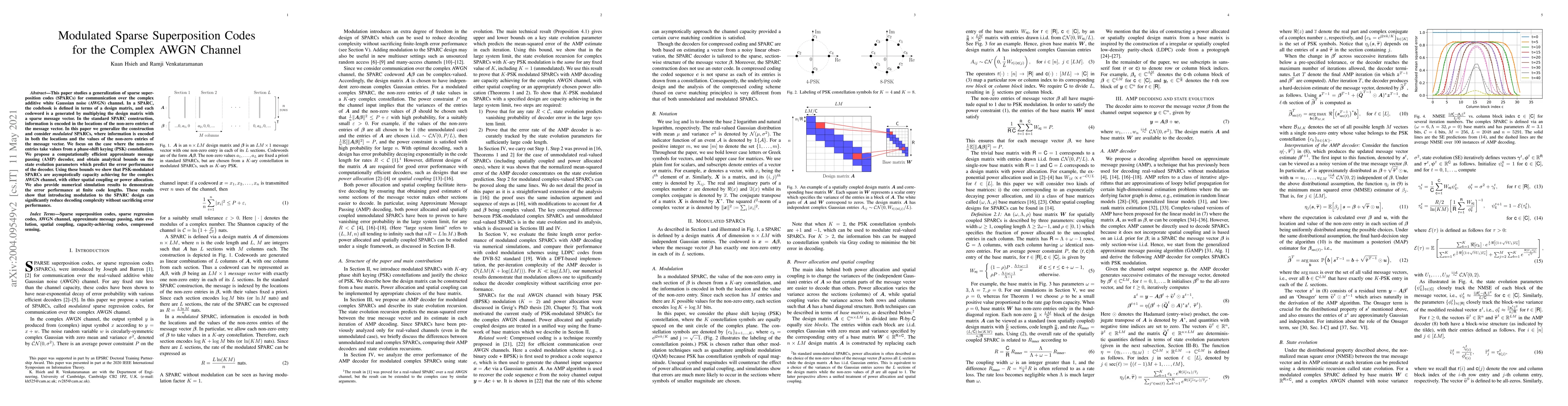 This paper introduces a new type of sparse superposition code that uses phase-shift keying modulation to encode information in both location and value of non-zero entries, achieving asymptotic capacity for the complex AWGN channel with reduced decoding complexity.