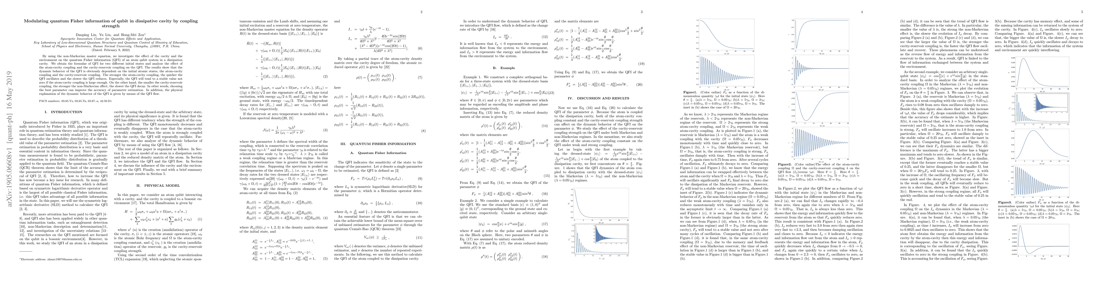This paper investigates how the quantum Fisher information (QFI) of a qubit in a dissipative cavity is modulated by varying the atom-cavity and cavity-reservoir coupling strengths. The study reveals that stronger atom-cavity coupling accelerates QFI oscillation and reduces decay, while weaker cavity-reservoir coupling enhances non-Markovian effects, improving parameter estimation accuracy.