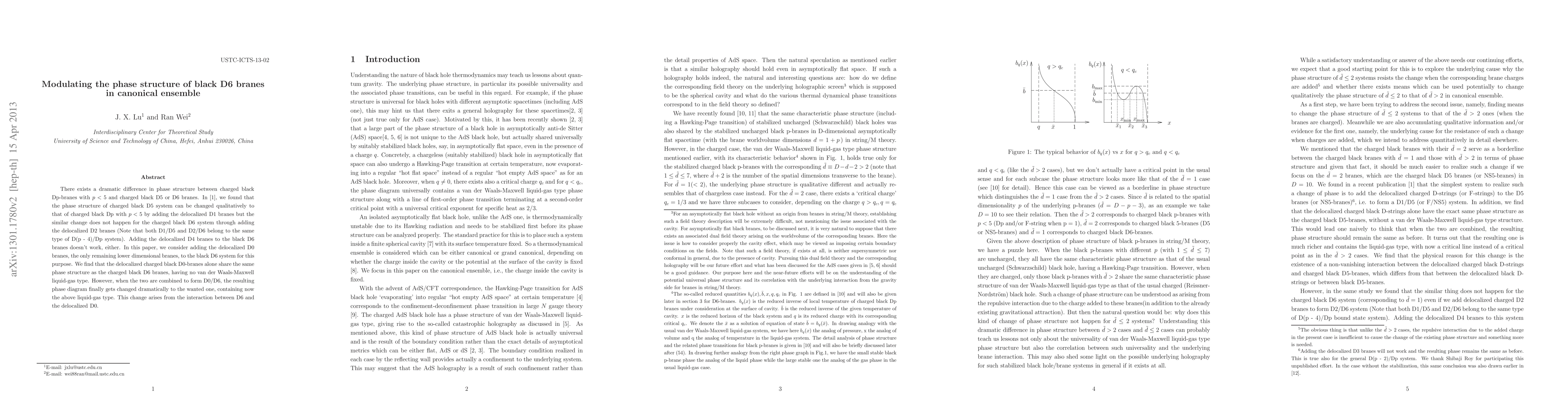 There exists a dramatic difference in phase structure between charged black Dp-branes with $p < 5$ and charged black D5 or D6 branes. In [1], we found that the phase structure of charged black D5 system can be changed qualitatively to that of charged black Dp with $p < 5$ by adding the delocalized D1 branes but the similar change does not happen for the charged black D6 system through adding the delocalized D2 branes (Note that both D1/D5 and D2/D6 belong to the same type of D(p - 4)/Dp system). Adding the delocalized D4 branes to the black D6 branes doesn't work, either. In this paper, we consider adding the delocalized D0 branes, the only remaining lower dimensional branes, to the black D6 system for this purpose. We find that the delocalized charged black D0-branes alone share the same phase structure as the charged black D6 branes, having no van der Waals-Maxwell liquid-gas type. However, when the two are combined to form D0/D6, the resulting phase diagram finally gets changed dramatically to the wanted one, containing now the above liquid-gas type. This change arises from the interaction between D6 and the delocalized D0.