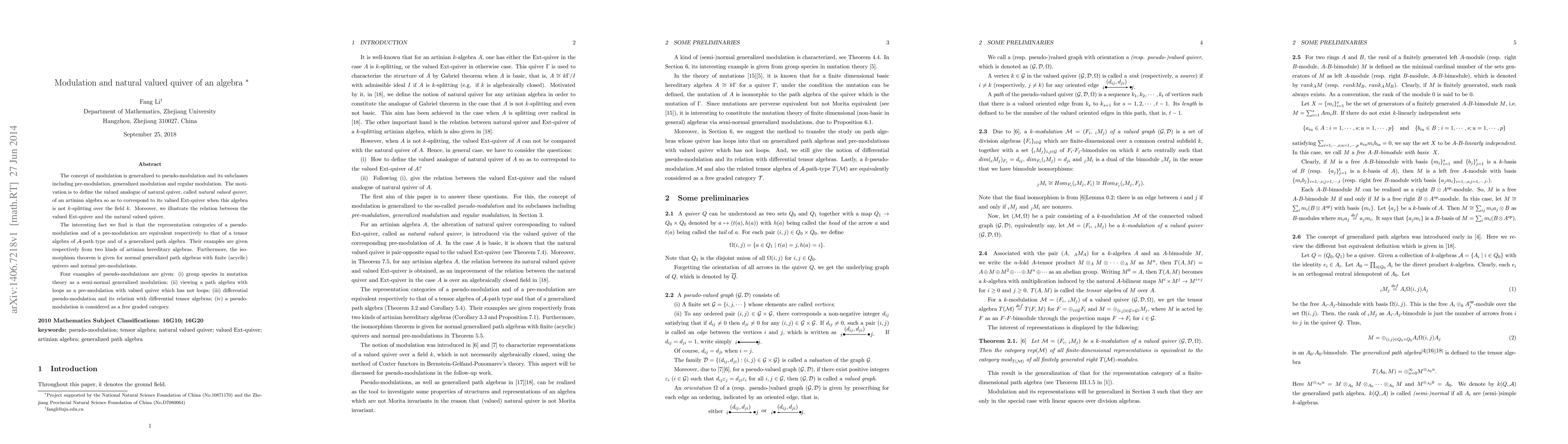 The concept of modulation is generalized to pseudo-modulation and its subclasses including pre-modulation, generalized modulation and regular modulation. The motivation is to define the valued analogue of natural quiver, called {\em natural valued quiver}, of an artinian algebra so as to correspond to its valued Ext-quiver when this algebra is not $k$-splitting over the field $k$. Moreover, we illustrate the relation between the valued Ext-quiver and the natural valued quiver. The interesting fact we find is that the representation categories of a pseudo-modulation and of a pre-modulation are equivalent respectively to that of a tensor algebra of $\mathcal A$-path type and of a generalized path algebra. Their examples are given respectively from two kinds of artinian hereditary algebras. Furthermore, the isomorphism theorem is given for normal generalized path algebras with finite (acyclic) quivers and normal pre-modulations. Four examples of pseudo-modulations are given: (i) group species in mutation theory as a semi-normal generalized modulation; (ii) viewing a path algebra with loops as a pre-modulation with valued quiver which has not loops; (iii) differential pseudo-modulation and its relation with differential tensor algebras; (iv) a pseudo-modulation is considered as a free graded category.