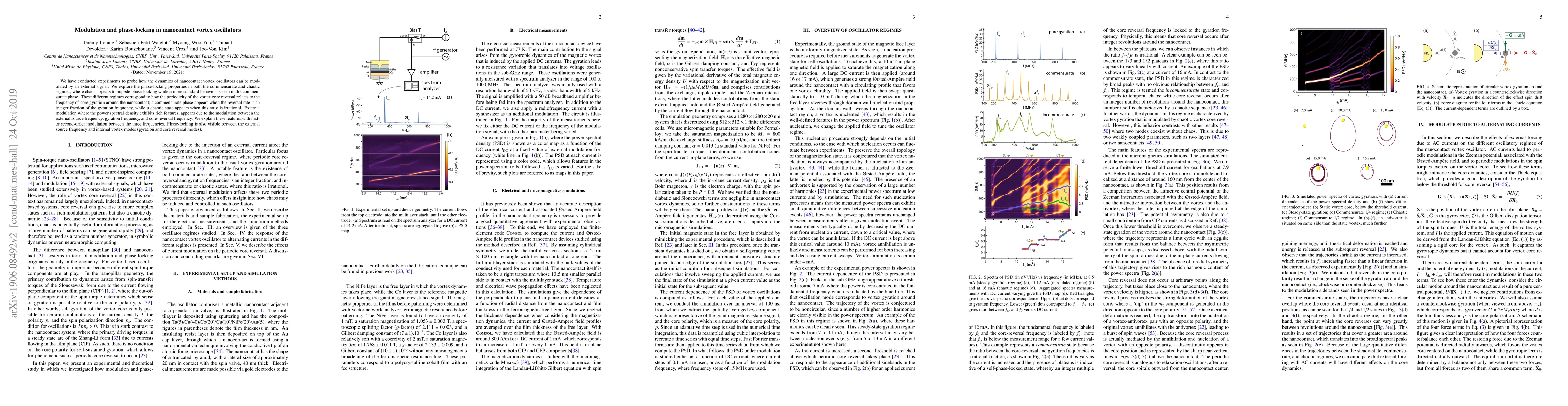 This research investigates the modulation and phase-locking dynamics in nanocontact vortex oscillators, revealing distinct behaviors in commensurate and chaotic regimes. While phase-locking is standard in the commensurate phase, chaos hinders it, with modulation features explained by interactions between external modulation, gyration, and core reversal frequencies.
