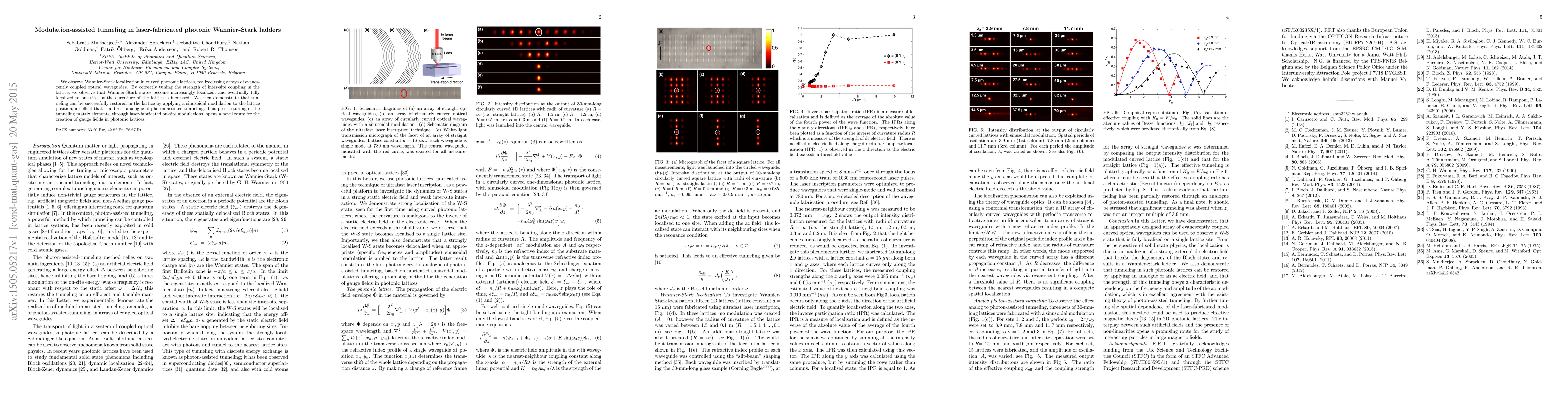 This paper investigates Wannier-Stark localization in photonic lattices created by evanescently coupled waveguides, showing that increased lattice curvature leads to full site localization. The authors demonstrate that tunneling can be restored by applying a sinusoidal modulation to the lattice, analogous to photon-assisted tunneling, thus enabling precise control over tunneling matrix elements and opening new pathways for gauge field creation in photonic systems.
