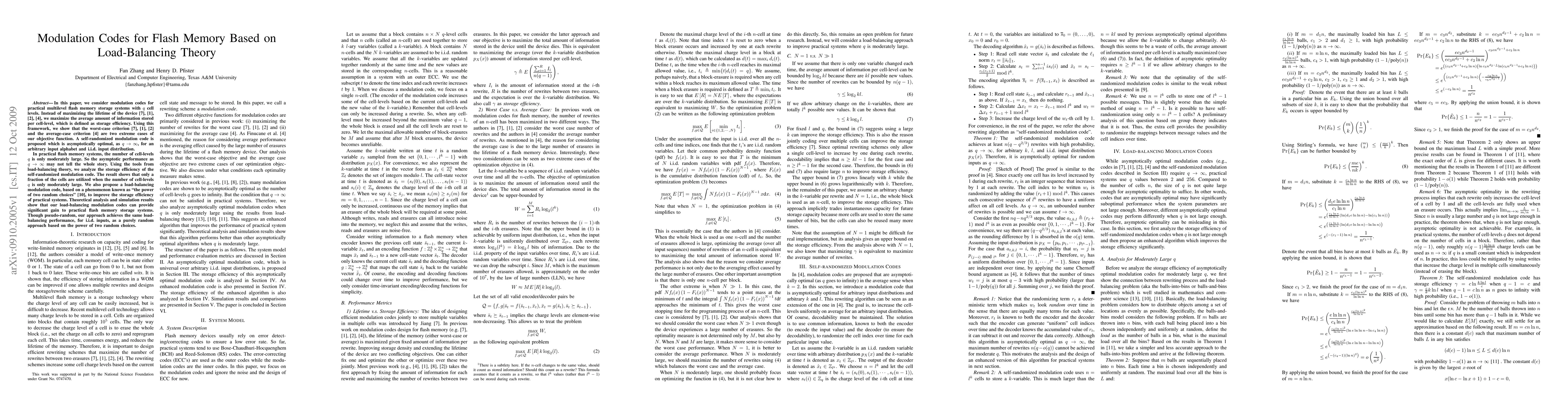 This paper proposes modulation codes for flash memory systems to maximize storage efficiency rather than device lifetime. It introduces a self-randomized modulation code that is asymptotically optimal and applies load-balancing theory to improve practical efficiency, showing significant gains through theoretical analysis and simulations.