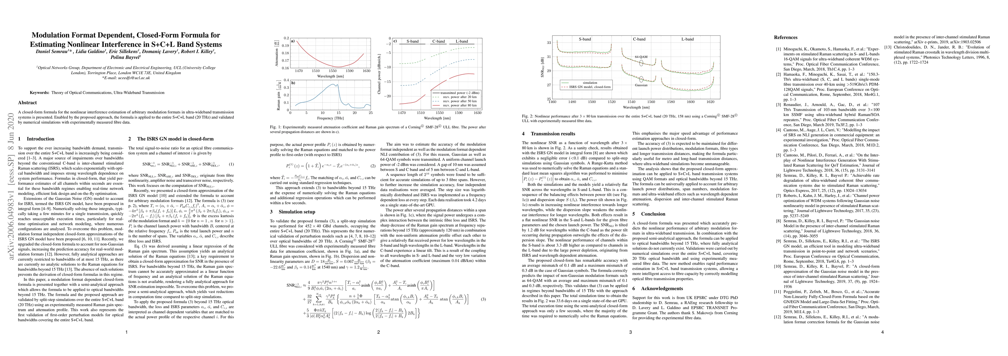 A closed-form formula for the nonlinear interference estimation of arbitrary modulation formats in ultra-wideband transmission systems is presented. Enabled by the proposed approach, the formula is applied to the entire S+C+L band (20 THz) and validated by numerical simulations with experimentally measured fibre data.