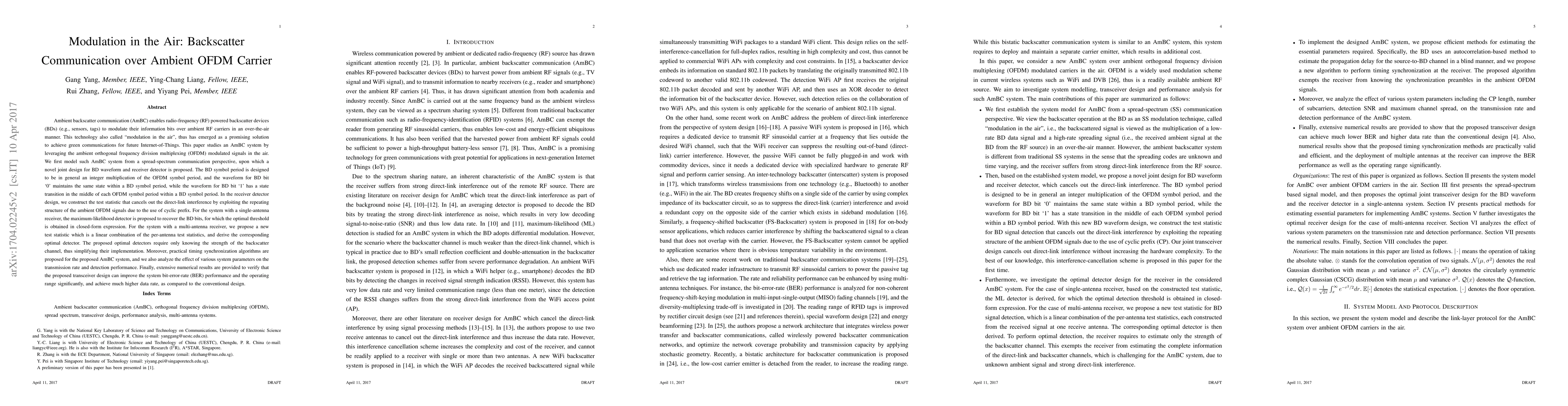 The paper proposes a novel backscatter communication system over ambient OFDM carriers, modeling it from a spread-spectrum communication perspective and designing a joint BD waveform and receiver detector.