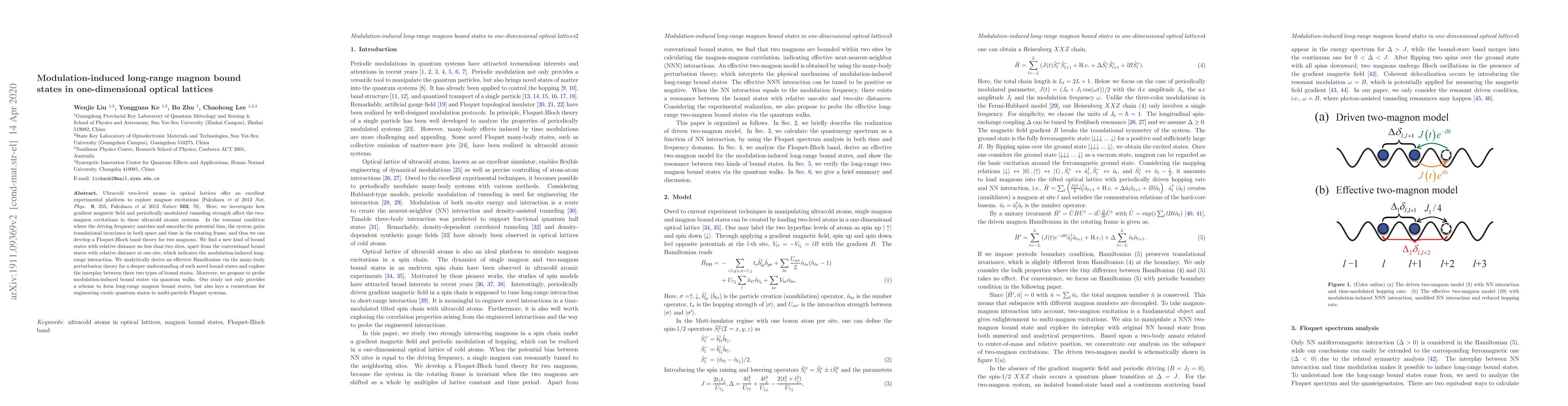 This paper explores how gradient magnetic fields and modulated tunneling affect magnon excitations in ultracold atomic systems within optical lattices, discovering long-range magnon bound states through modulation. The study proposes using quantum walks to probe these states and lays a foundation for engineering exotic quantum states in multi-particle systems.
