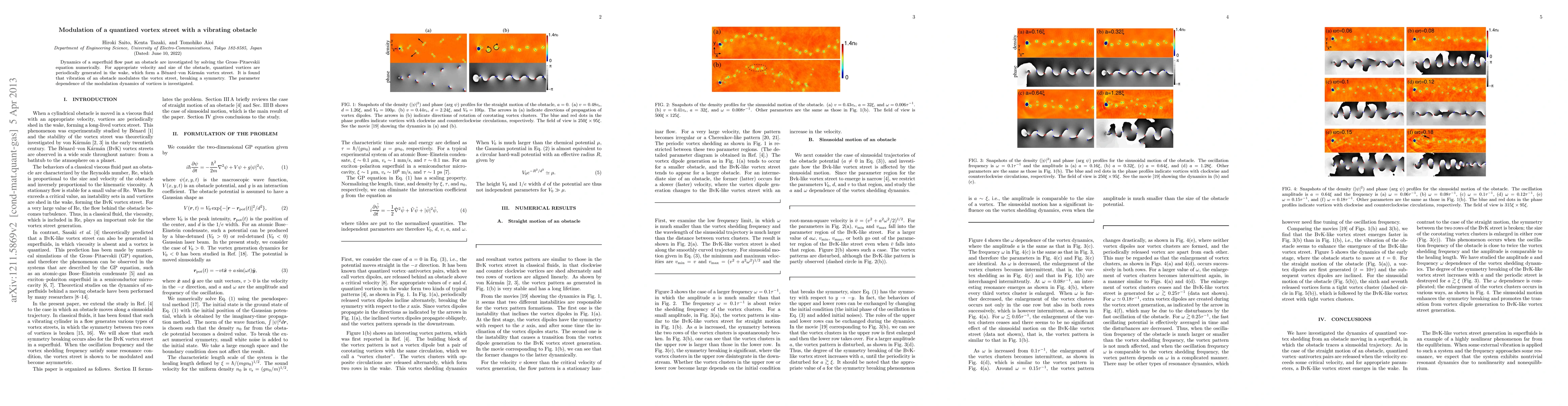 Researchers found that vibrating an obstacle in a superfluid flow creates quantized vortices that break symmetry and form a Benard-von Karman vortex street.