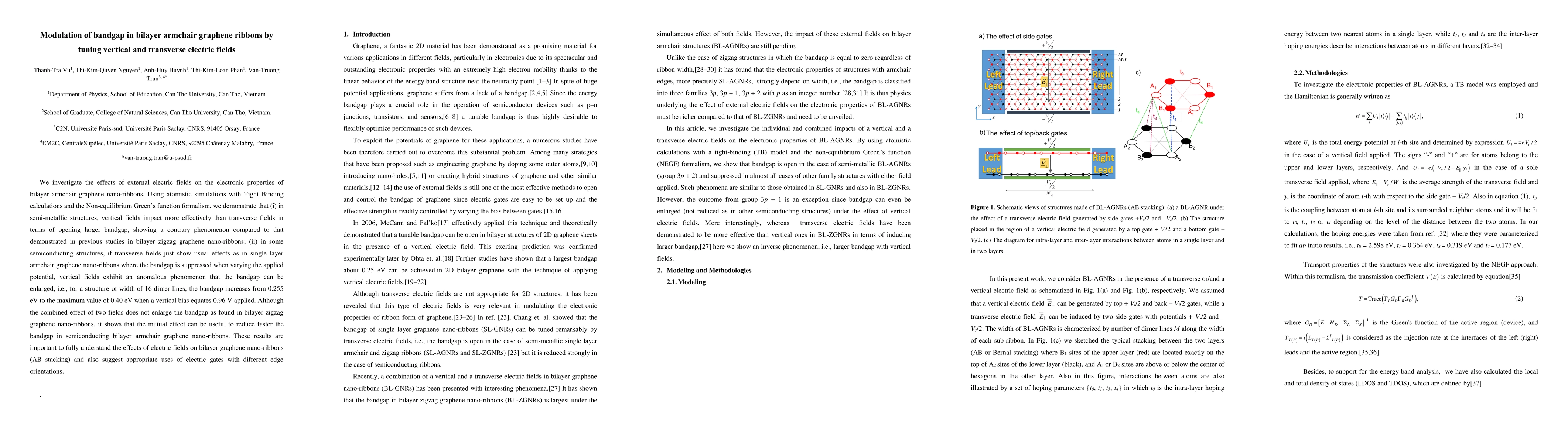 This study demonstrates that vertical and transverse electric fields significantly modulate the bandgap in bilayer armchair graphene nano-ribbons, with vertical fields more effectively opening larger bandgaps than transverse fields, contrary to previous findings in zigzag structures. Vertical fields can also enlarge the bandgap in certain semiconducting structures, showing an anomalous effect not seen in single layer armchair graphene.