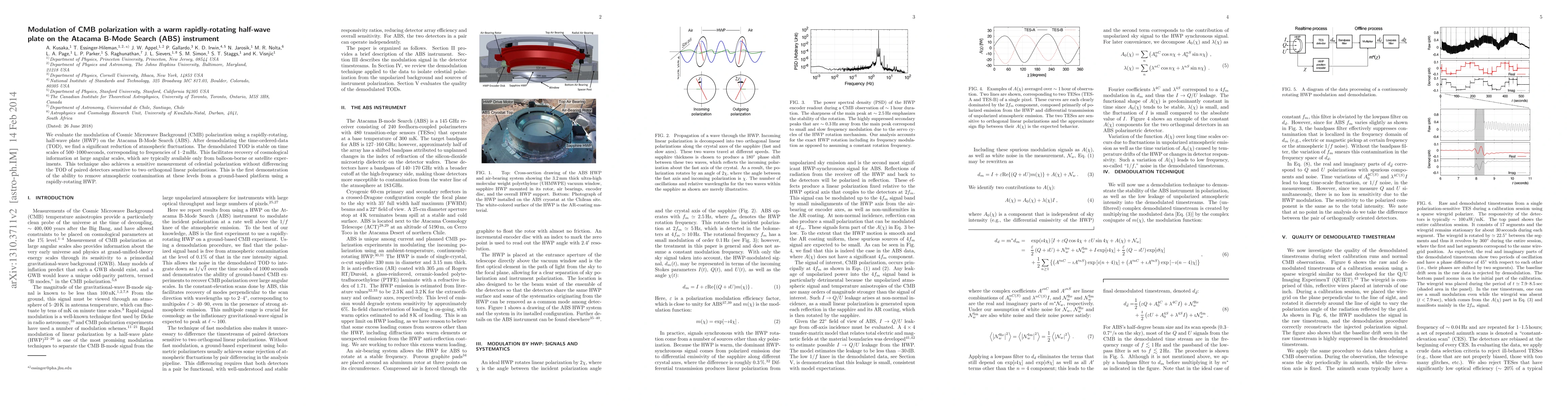 This study demonstrates the use of a rapidly-rotating half-wave plate on the ABS instrument to modulate CMB polarization, significantly reducing atmospheric fluctuations and stabilizing the time-ordered data, thus facilitating cosmological measurements from ground-based observations. This technique marks the first successful removal of atmospheric contamination at these levels from a ground-based platform.