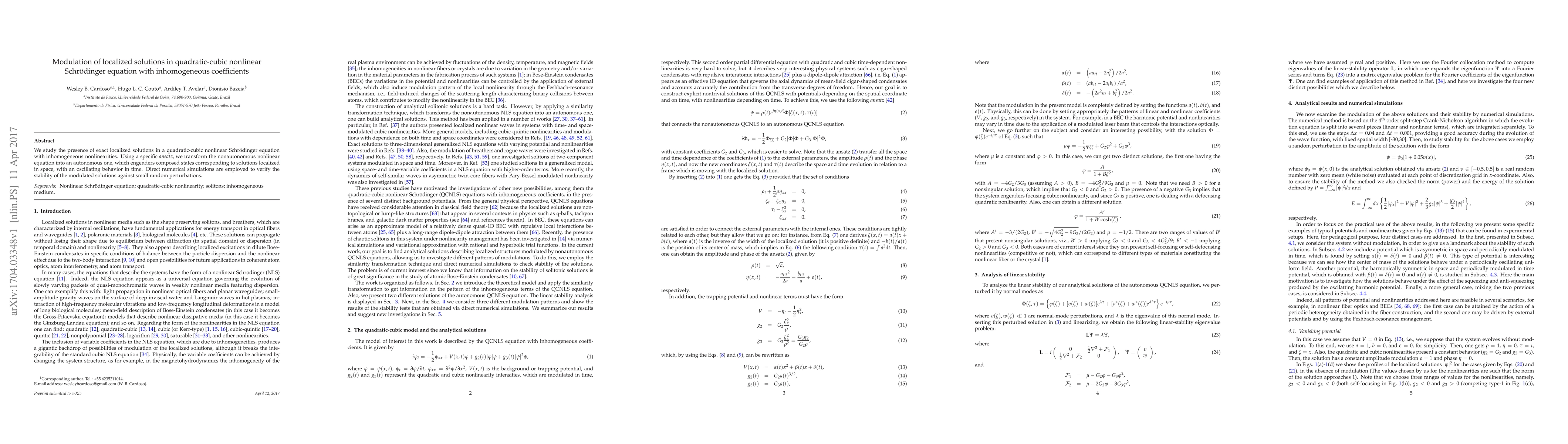 The paper introduces a method to transform a nonautonomous quadratic-cubic nonlinear Schrödinger equation into an autonomous form, facilitating the analysis of localized solutions and their stability.