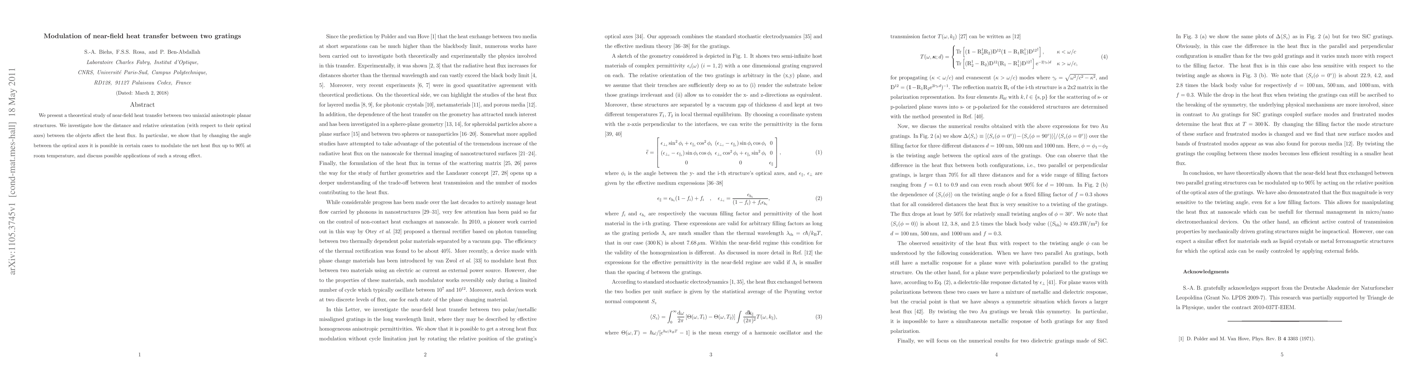 We present a theoretical study of near-field heat transfer between two uniaxial anisotropic planar structures. We investigate how the distance and relative orientation (with respect to their optical axes) between the objects affect the heat flux. In particular, we show that by changing the angle between the optical axes it is possible in certain cases to modulate the net heat flux up to 90% at room temperature, and discuss possible applications of such a strong effect.