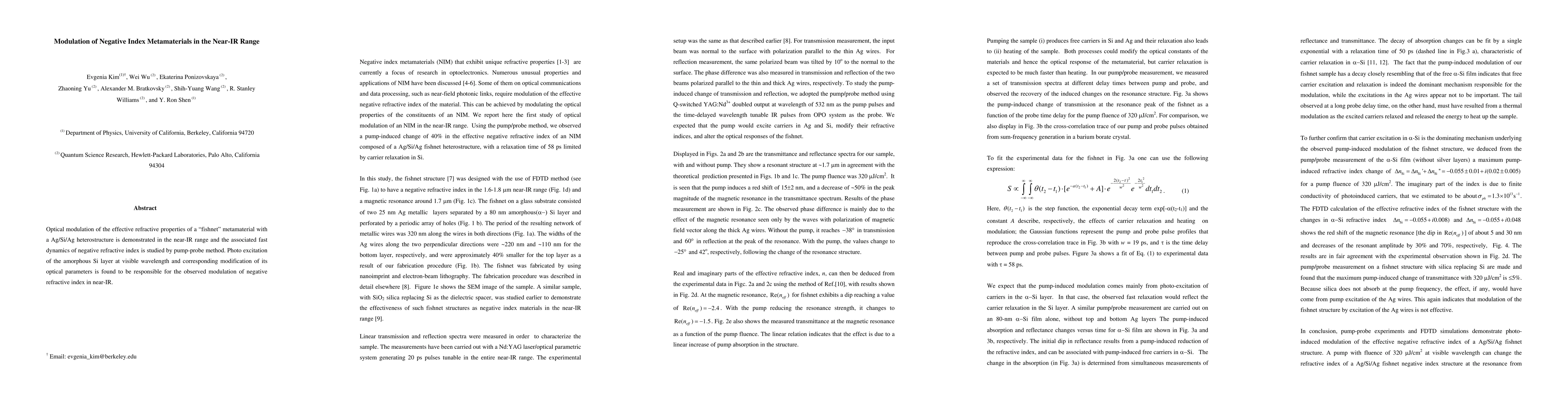 Researchers demonstrated modulation of a near-IR negative index metamaterial's effective refractive properties using photo excitation of the amorphous Si layer, revealing fast dynamics in the material.