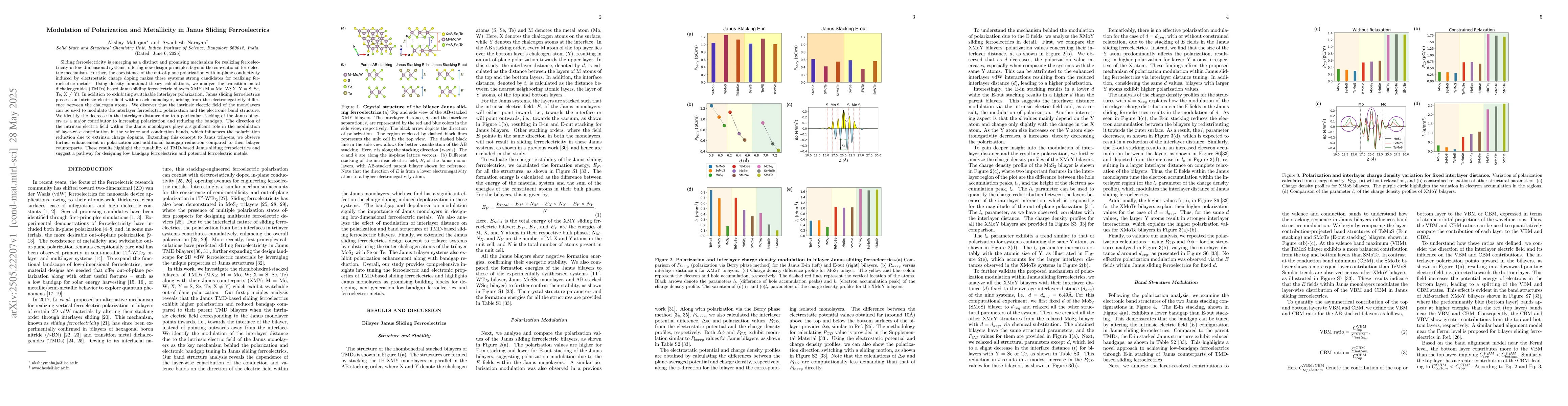 The paper presents a theoretical framework for understanding and modulating polarization and metallicity in Janus sliding ferroelectrics using density functional theory calculations.