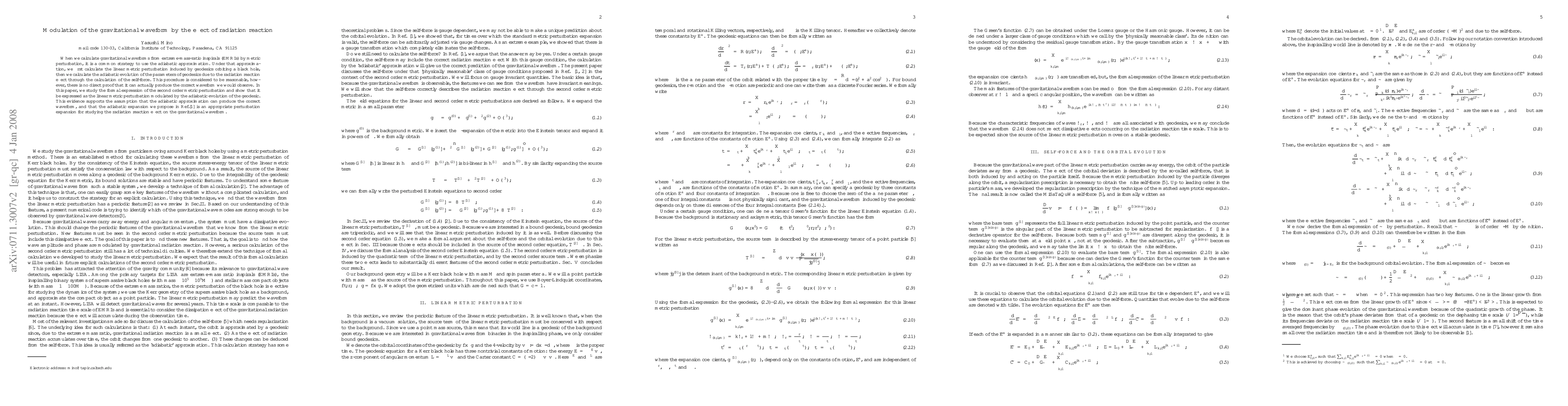 When we calculate gravitational waveforms from extreme-mass-ratio inspirals (EMRIs) by metric perturbation, it is a common strategy to use the adiabatic approximation. Under that approximation, we first calculate the linear metric perturbation induced by geodesics orbiting a black hole, then we calculate the adiabatic evolution of the parameters of geodesics due to the radiation reaction effect through the calculation of the self-force. This procedure is considered to be reasonable, however, there is no direct proof that it can actually produce the correct waveform we would observe. In this paper, we study the formal expression of the second order metric perturbation and show that it be expressed as the linear metric perturbation modulated by the adiabatic evolution of the geodesic. This evidence supports the assumption that the adiabatic approximation can produce the correct waveform, and that the adiabatic expansion we propose in Ref.\cite{adi} is an appropriate perturbation expansion for studying the radiation reaction effect on the gravitational waveform.