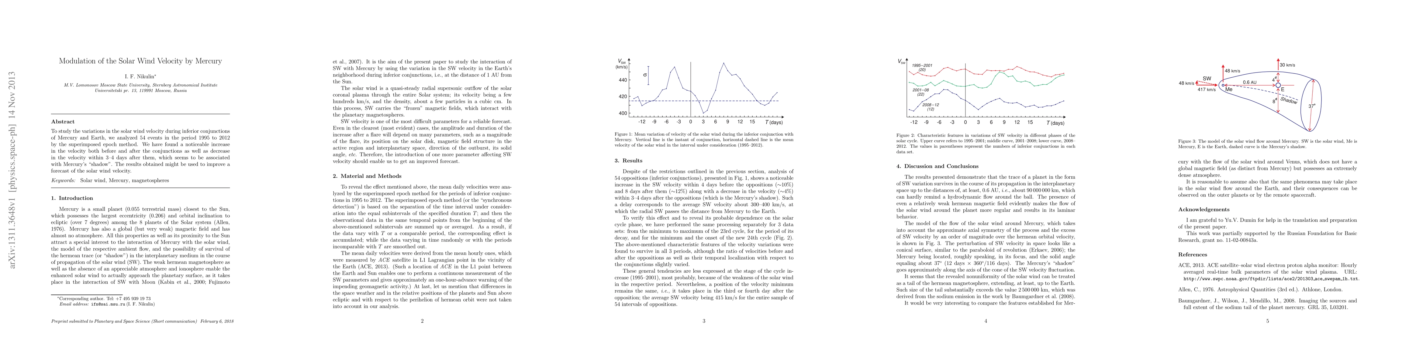 This paper investigates changes in solar wind velocity during Mercury's inferior conjunctions with Earth, finding increased velocity before and after conjunctions and a decrease 3-4 days post-conjunction, potentially linked to Mercury's "shadow". These findings could enhance solar wind velocity forecasts.