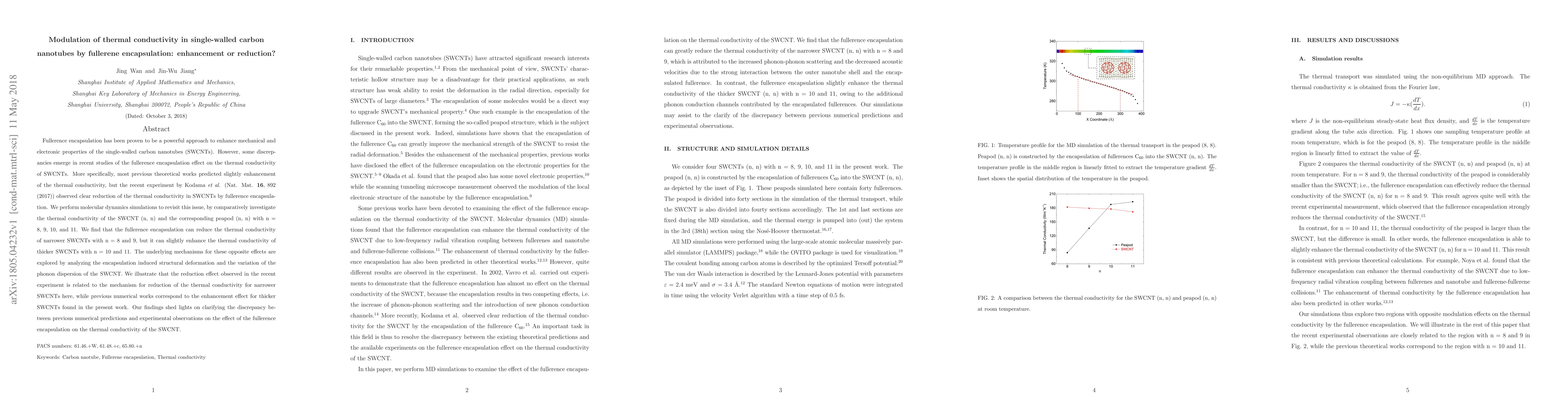 This study investigates the thermal conductivity of single-walled carbon nanotubes (SWCNTs) encapsulated by fullerenes using molecular dynamics simulations. The results show that fullerene encapsulation reduces thermal conductivity in narrower SWCNTs but slightly enhances it in thicker SWCNTs, resolving discrepancies between previous theoretical predictions and experimental observations.