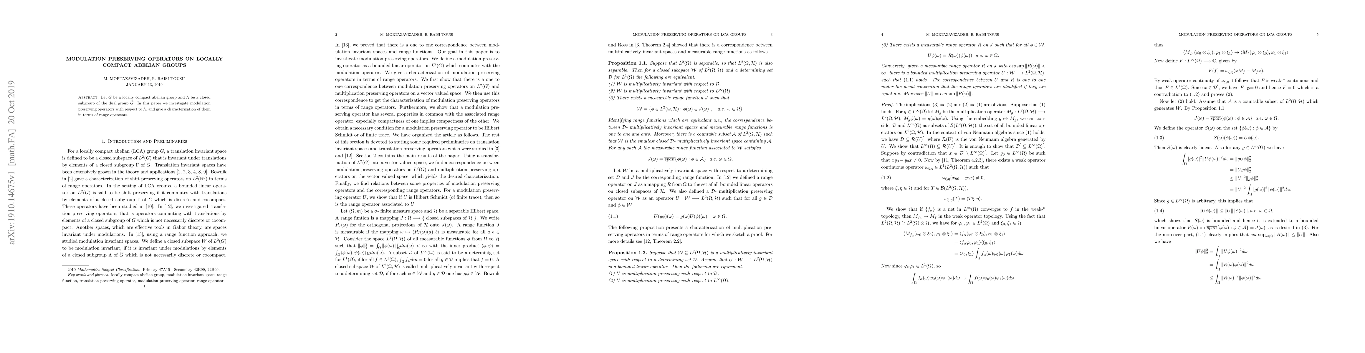 This paper explores modulation preserving operators on locally compact abelian groups $G$ concerning a closed subgroup $\Lambda$ of the dual group $\widehat{G}$, providing a characterization of these operators in terms of range operators.