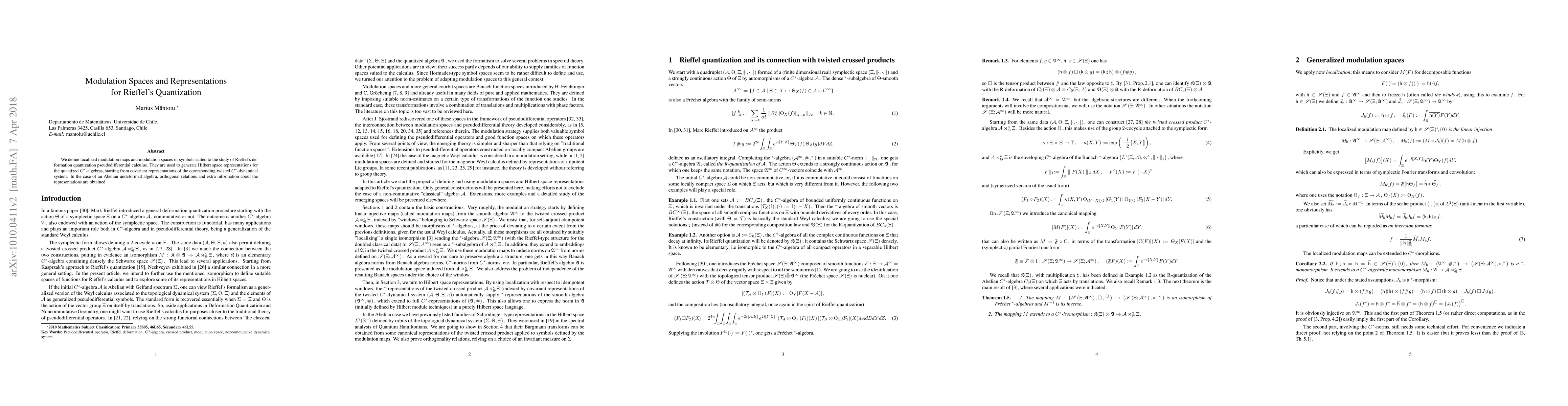 The paper introduces localized modulation maps and spaces for studying Rieffel's deformation quantization, utilizing them to create Hilbert space representations for quantized $C^*$-algebras. For Abelian undeformed algebras, it derives orthogonal relations and additional insights into the representations.