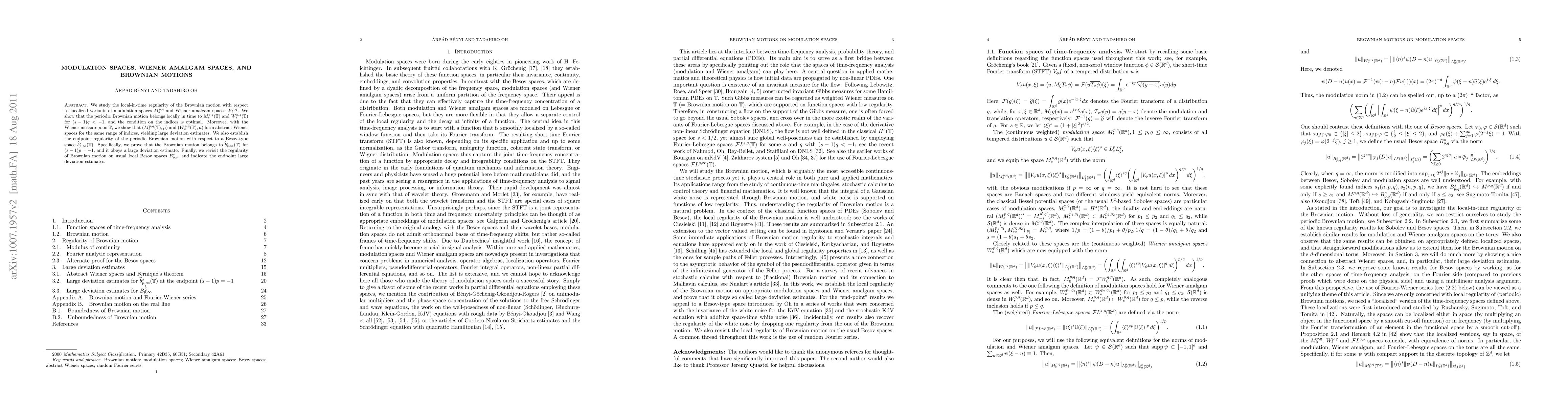 This paper explores the local-in-time regularity of periodic Brownian motion within modulation and Wiener amalgam spaces, proving optimal conditions for membership. It also establishes these spaces as abstract Wiener spaces, providing large deviation estimates and endpoint regularity in Besov-type spaces.