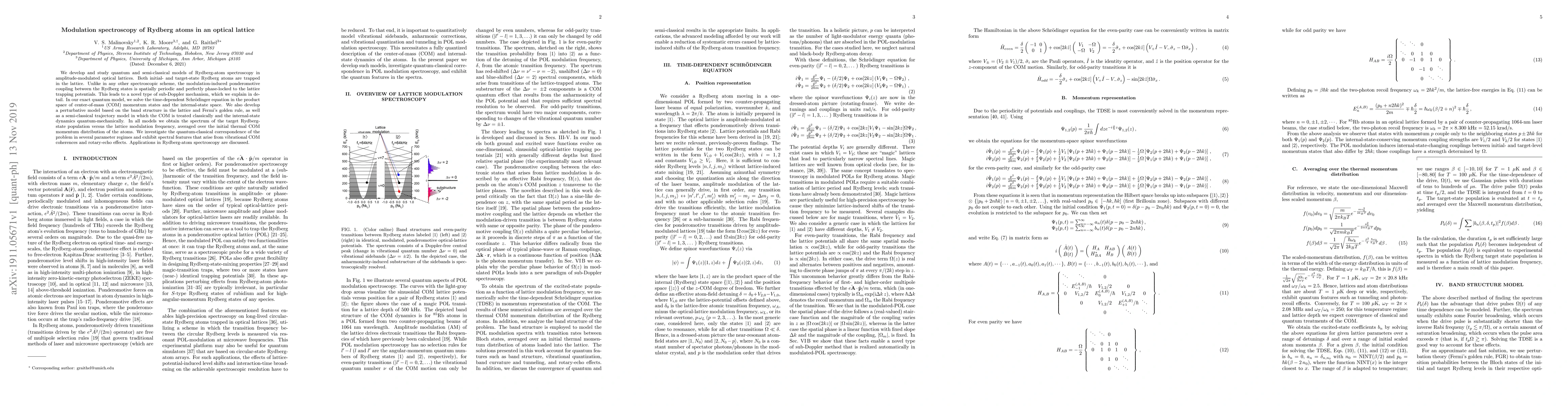 We develop and study quantum and semi-classical models of Rydberg-atom spectroscopy in amplitude-modulated optical lattices. Both initial- and target-state Rydberg atoms are trapped in the lattice. Unlike in any other spectroscopic scheme, the modulation-induced ponderomotive coupling between the Rydberg states is spatially periodic and perfectly phase-locked to the lattice trapping potentials. This leads to a novel type of sub-Doppler mechanism, which we explain in detail. In our exact quantum model, we solve the time-dependent Schr\"odinger equation in the product space of center-of-mass (COM) momentum states and the internal-state space. We also develop a perturbative model based on the band structure in the lattice and Fermi's golden rule, as well as a semi-classical trajectory model in which the COM is treated classically and the internal-state dynamics quantum-mechanically. In all models we obtain the spectrum of the target Rydberg-state population versus the lattice modulation frequency, averaged over the initial thermal COM momentum distribution of the atoms. We investigate the quantum-classical correspondence of the problem in several parameter regimes and exhibit spectral features that arise from vibrational COM coherences and rotary-echo effects. Applications in Rydberg-atom spectroscopy are discussed.