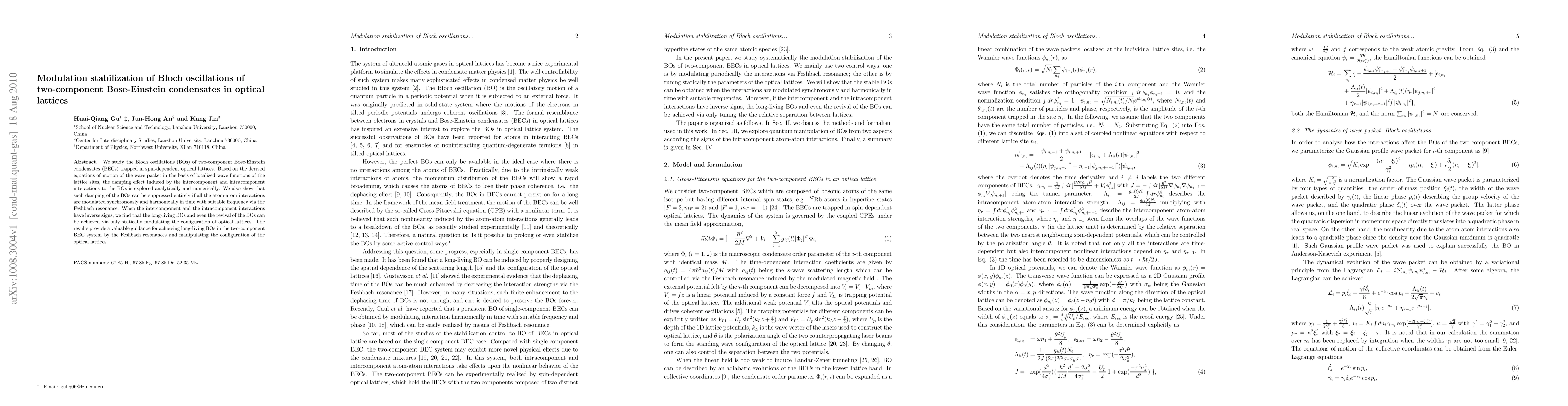 This study investigates the modulation stabilization of Bloch oscillations in two-component Bose-Einstein condensates within optical lattices, revealing that damping effects can be suppressed through synchronous modulation of atom-atom interactions using Feshbach resonance. It also demonstrates that long-living Bloch oscillations can be achieved by statically adjusting the optical lattice configuration when interactions have opposite signs.