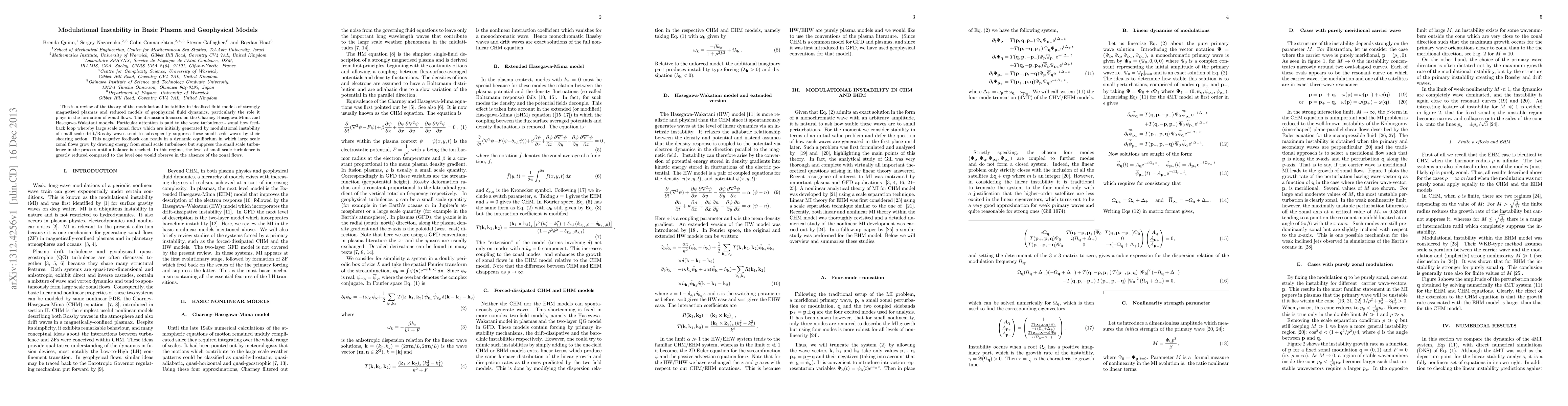 This review paper explores how modulational instability in plasma models leads to zonal flows that can suppress small-scale turbulence, resulting in a dynamic equilibrium. It highlights the key role of wave-turbulence feedback loops in shaping the behavior of geophysical fluid dynamics.