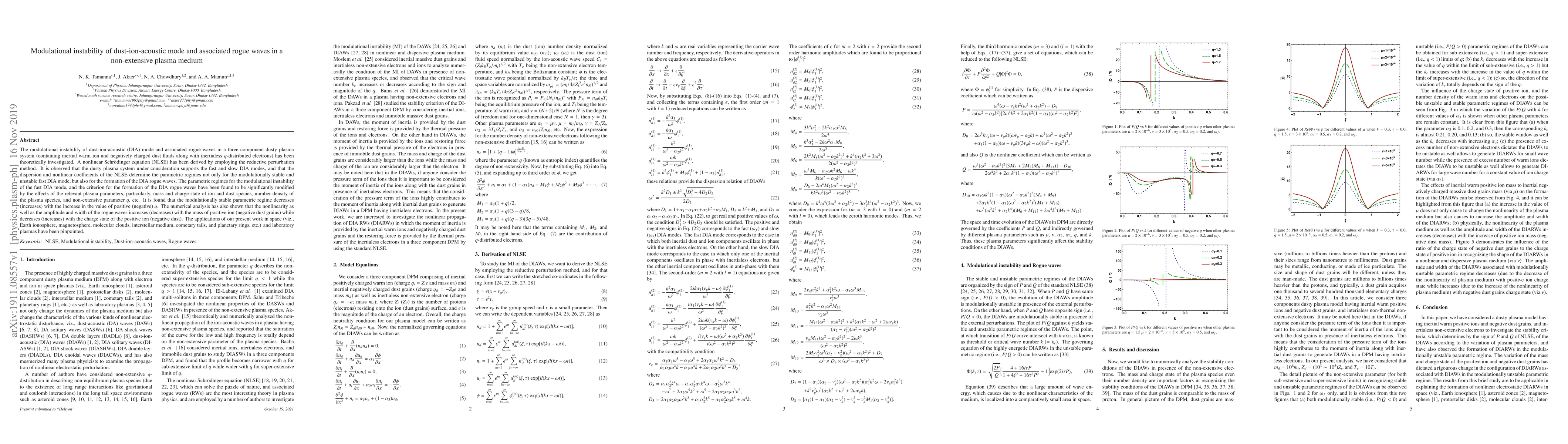 This paper investigates the modulational instability of dust-ion-acoustic waves in a non-extensive plasma medium, deriving a nonlinear Schrödinger equation to explore the conditions for rogue wave formation. The study finds that plasma parameters like ion and dust mass/charge and the non-extensive parameter $q$ significantly influence the instability and rogue wave characteristics.