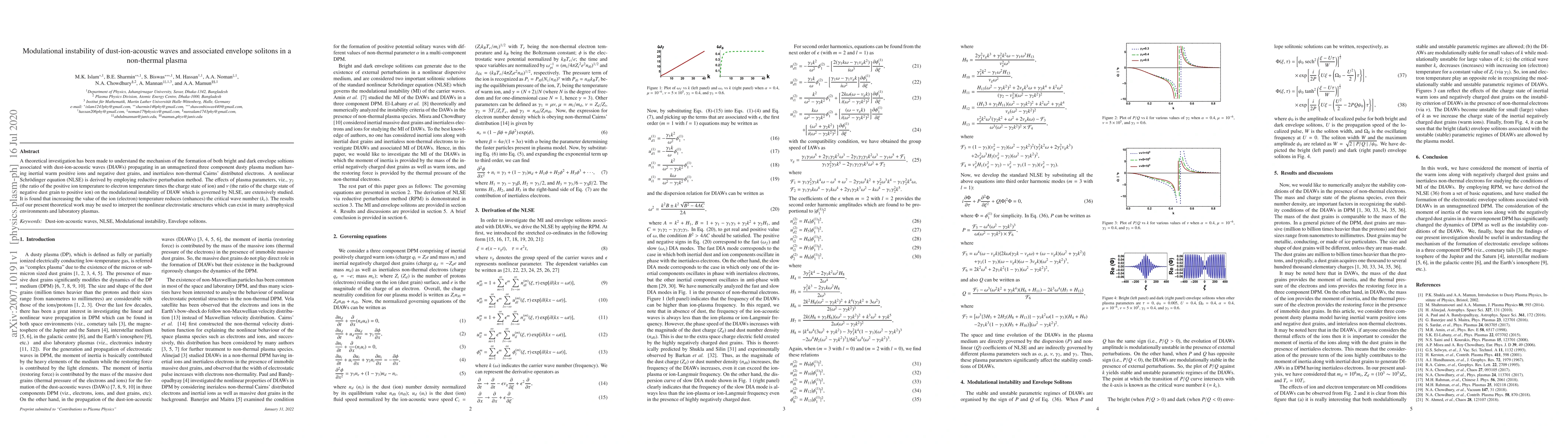 This paper investigates the modulational instability and formation of envelope solitons in dust-ion-acoustic waves within a non-thermal plasma, deriving a nonlinear Schrödinger equation. It finds that plasma parameters like ion temperature and dust grain charge influence the critical wave number, with implications for astrophysical and laboratory plasmas.