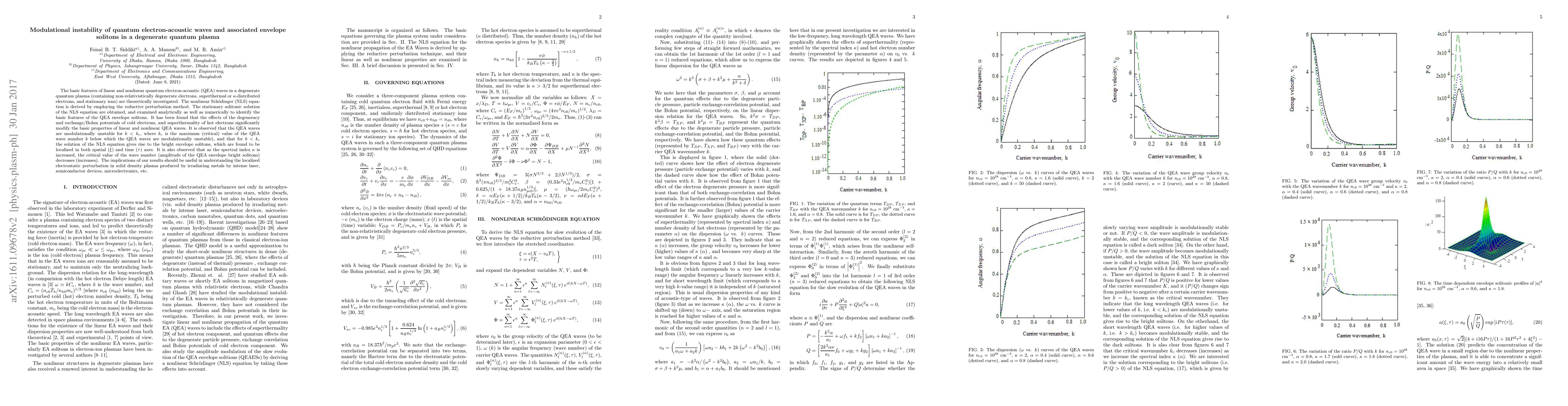 stationary ions) are theoretically investigated. The nonlinear Sch\"{o}dinger