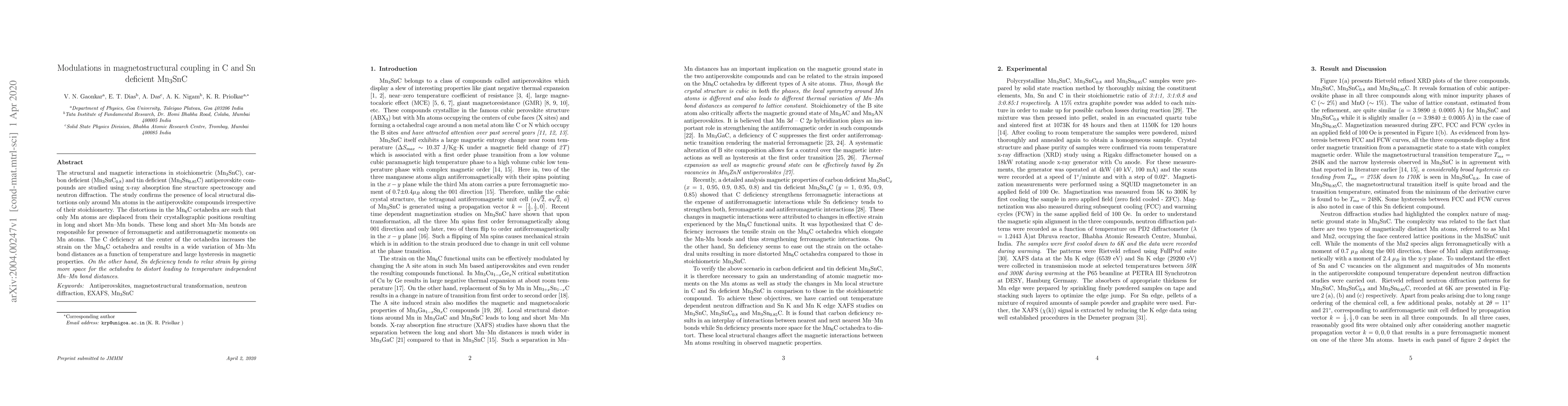 Researchers studied the effects of carbon and tin deficiencies on the structural and magnetic properties of Mn3SnC antiperovskite compounds, finding that local distortions in the Mn octahedra lead to varying magnetic moments and hysteresis.